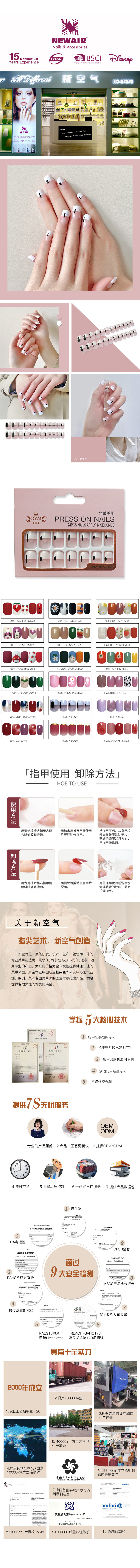 【包装方式】24片假指甲+2张背胶贴入一盒,12盒一中包  360盒/件
