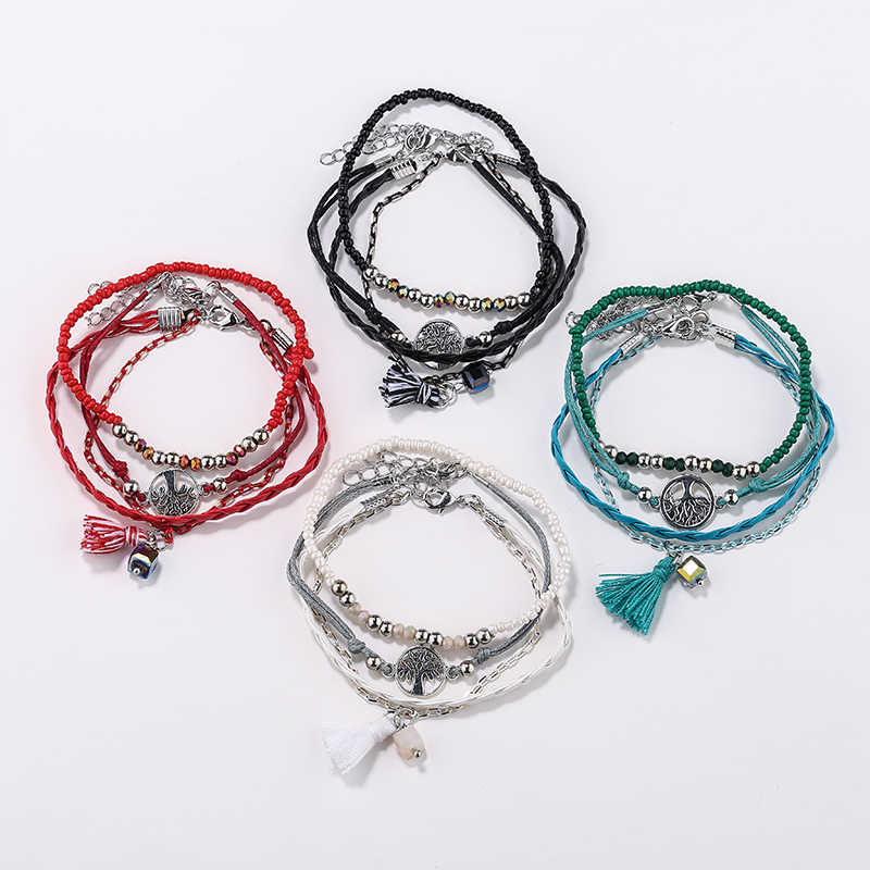 欧美复古波西米亚手链圆形生命树吊坠速卖通爆款多层手工编制手串 投诉