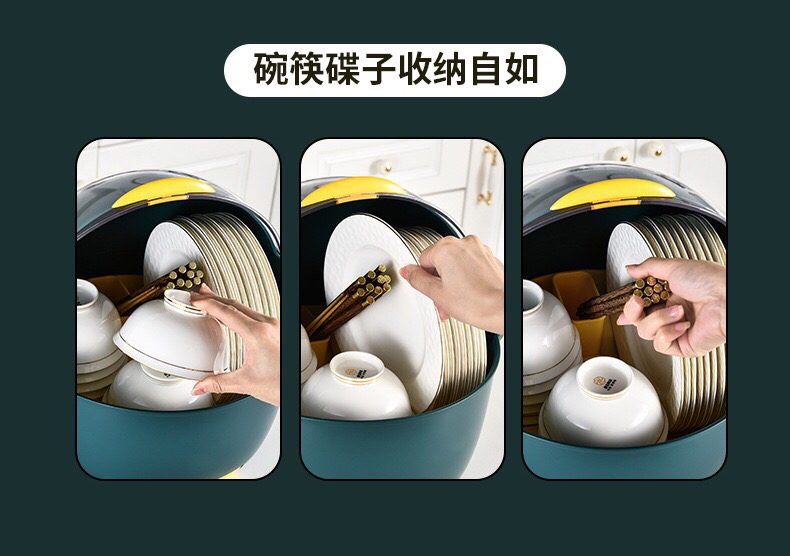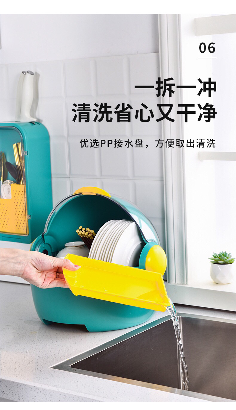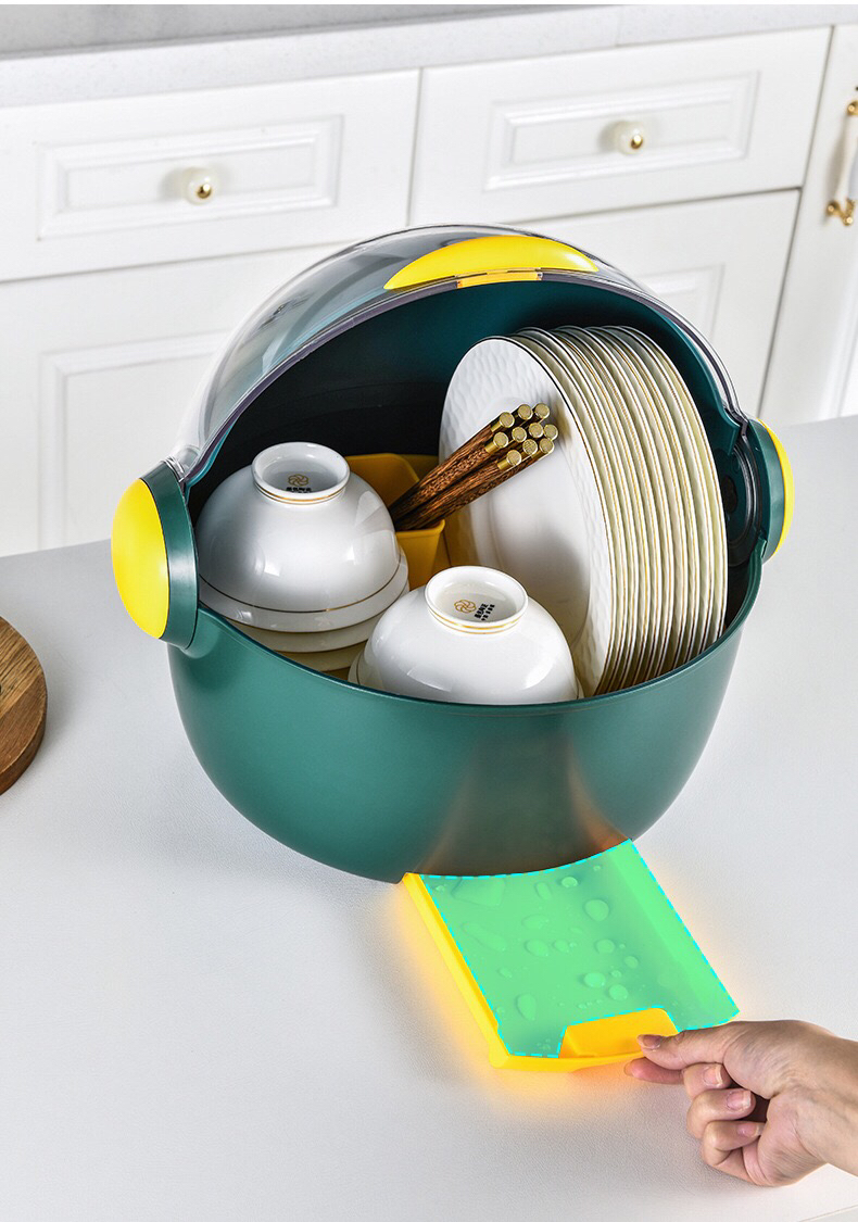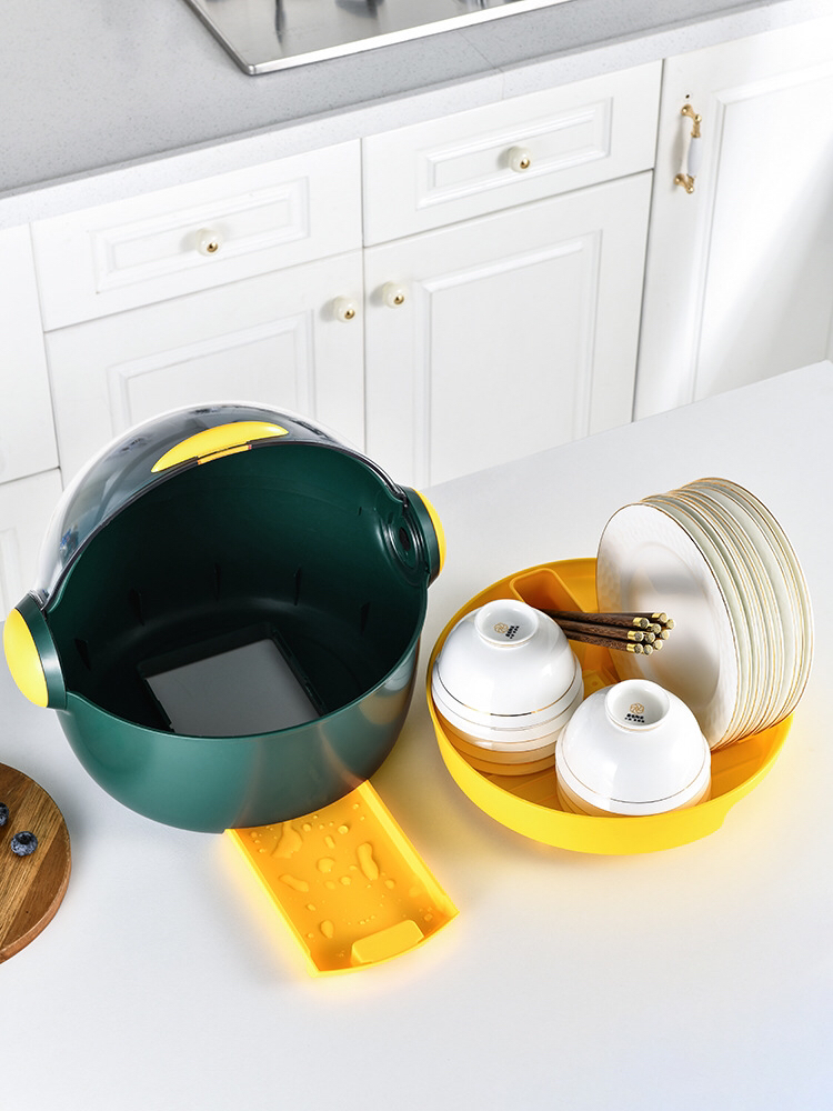 创意厨房碗筷收纳盒 放餐具碟盘沥水置物架 带盖防尘大容量 投诉