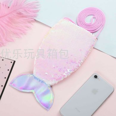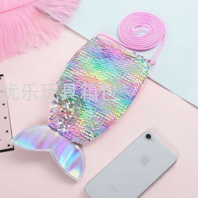 亮片鱼尾挎包 儿童翻片亮片包  长绳挎包