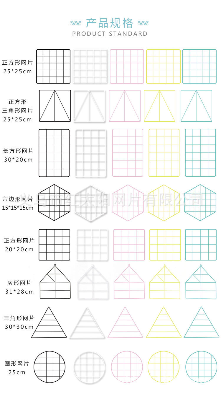 义乌红太阳网片公司主要产品有网片,超市夜市网片,重型货架、中型货架、轻型货架 ,超市货架,珠宝展示架,空洞展示架,各式挂篮,挂钩,衣架等。 材质主要为:精致钢。 义乌红太阳是国内较早生产、销售 货架的商家之一,产品专业生产加工的公司,拥有完整、科学的质量管理体系等商业设施的设计和制作。本公司实力雄厚、声誉卓著,拥有先进的生产设备,尖端的生产技术和完善的售后服务;可满足客户不同的设计需求和使用需要。本厂产品均经静电喷塑,耐腐蚀,结构合理,任意组装,承重力强,可多次拆装,广泛应用社会各行业。 我们相信客户的眼光!真诚的期待各界朋友和新老客户的光临指导! 信条 :公司恪守:“客户至上、热情服务,急客户所急”,竭诚为您提供便捷高效的服务。 我们保证您能得到全方位的服务!红太阳网片有限公司的诚信、实力和产品质量获得业界的认可。欢迎各界朋友莅临参观、指导和业务洽谈,公司本着:以质量求生存,以效率求空间,以信誉求发展,奉客户为上帝,我们用努力和汗水,去赢得市场,赢得掌声,恁的鼓励是对我们的支持!