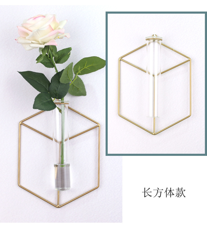 金色长方体  客厅店面装饰品挂件壁饰INS风卧室花瓶铁艺墙壁挂饰