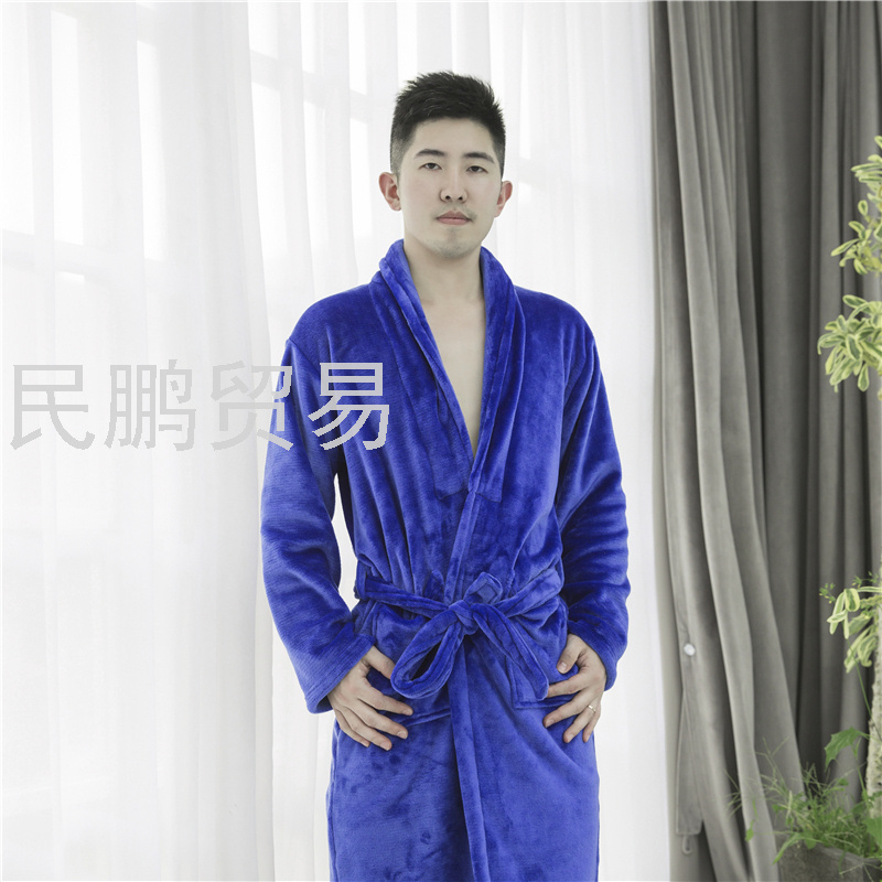 厂家直销高档加厚法兰绒珊瑚绒纯色与浴袍