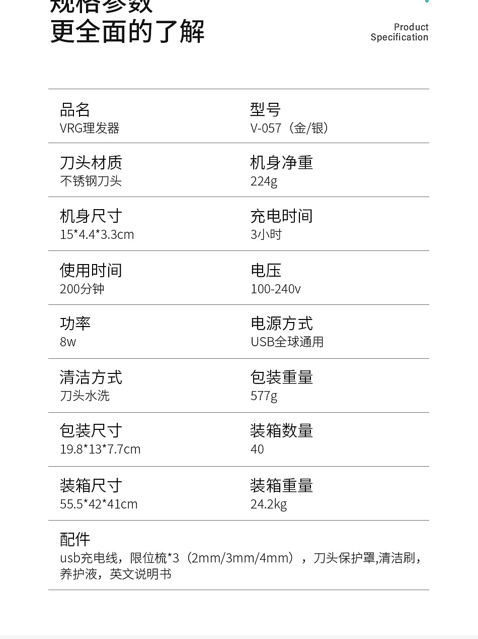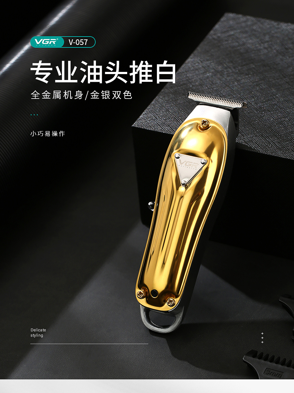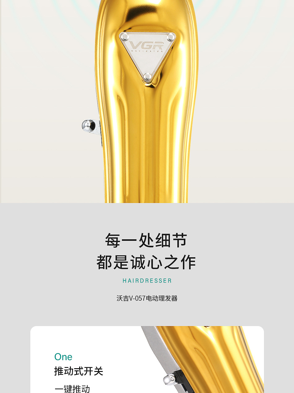 VGR V-057 金属便携理发器 金色电推剪 发廊专业油头剪 投诉