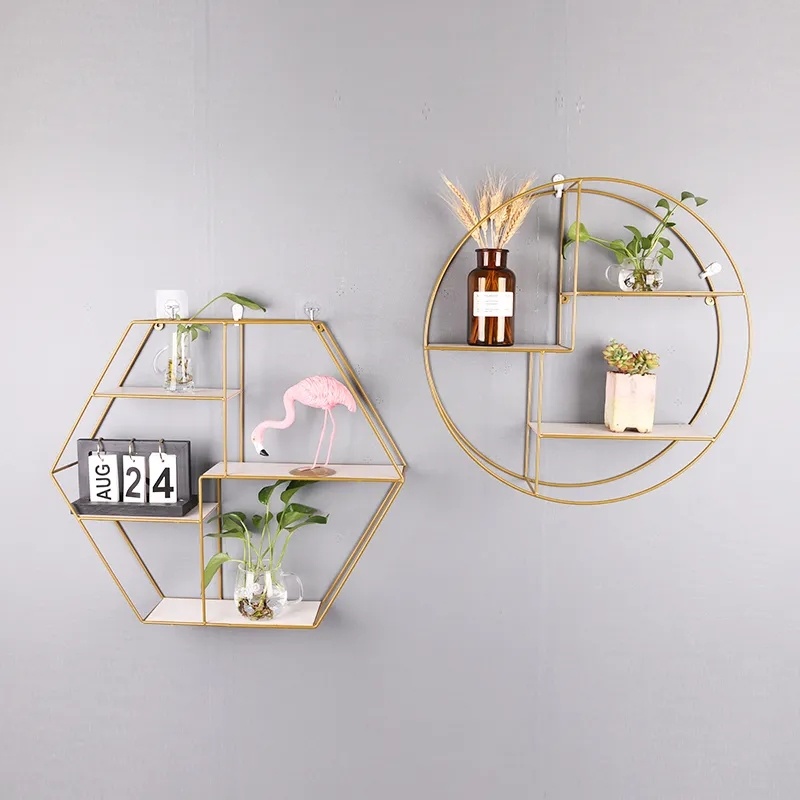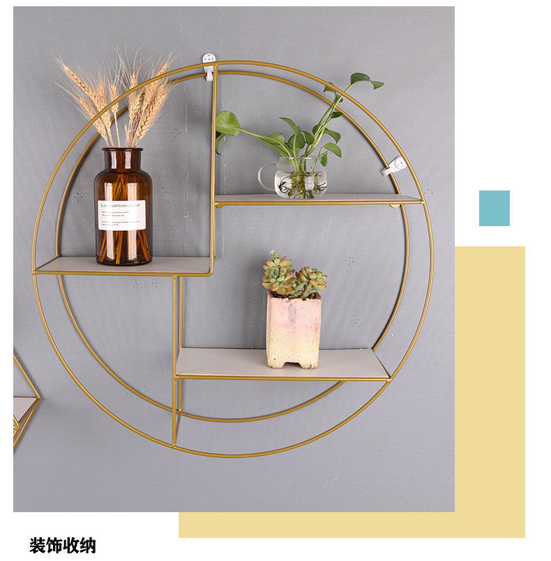 圆形金色 北欧风格铁艺墙创意客厅房间墙壁装饰品墙面收纳架