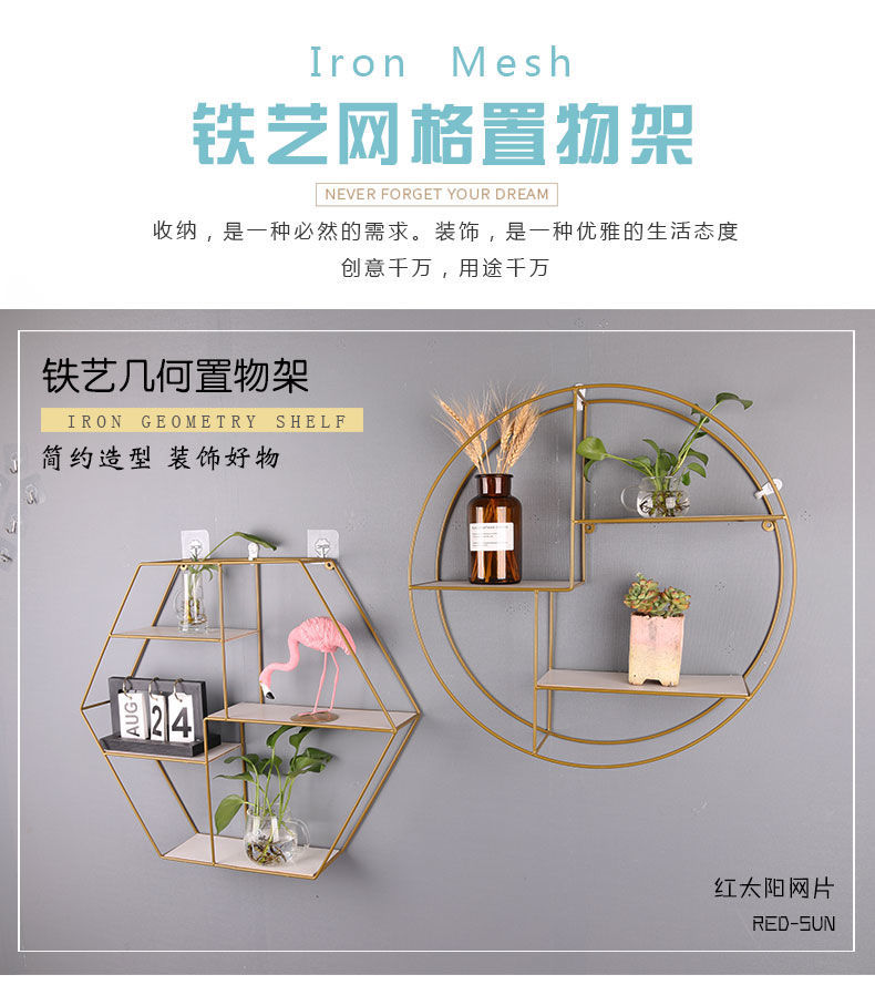 圆形金色 北欧风格铁艺墙创意客厅房间墙壁装饰品墙面收纳架 投诉