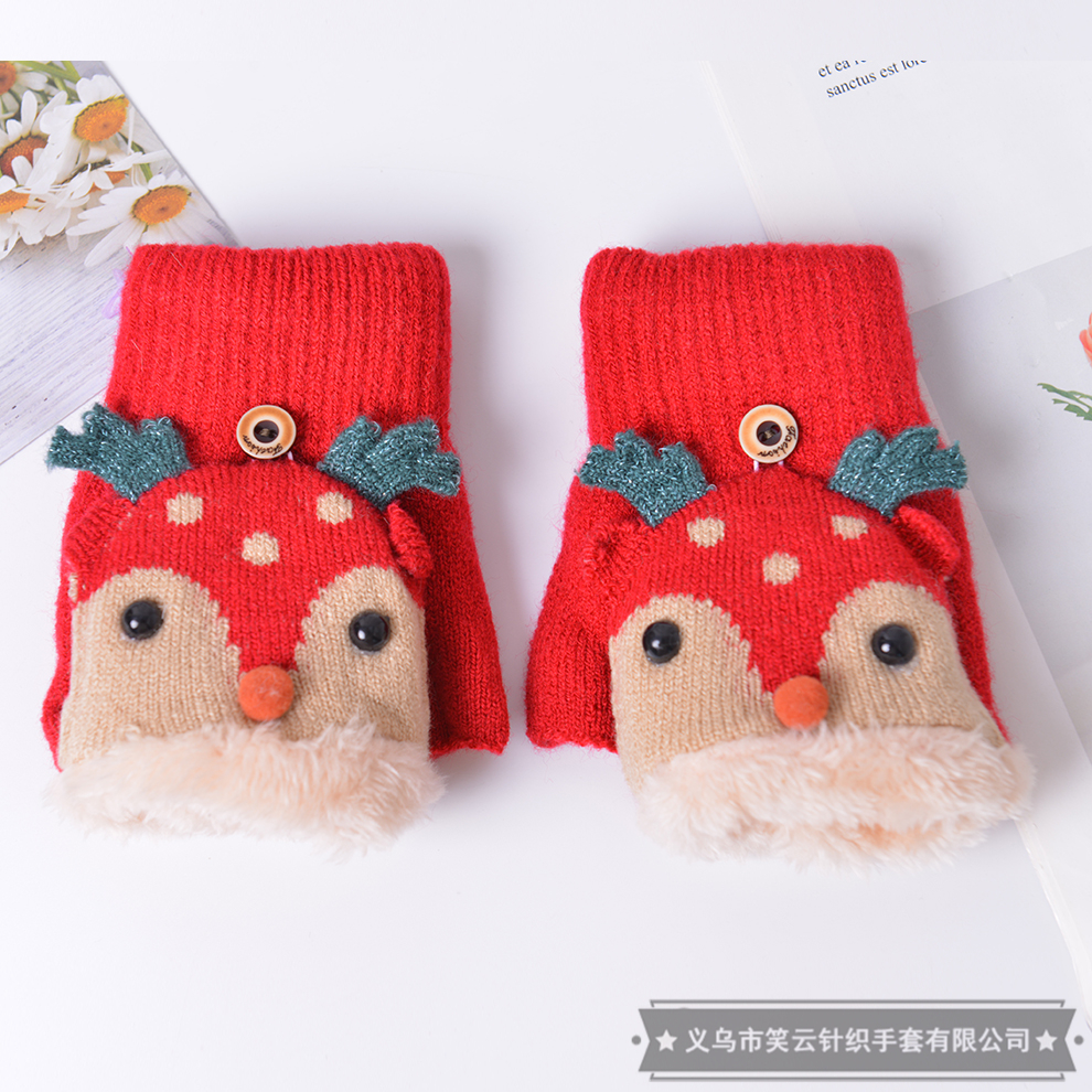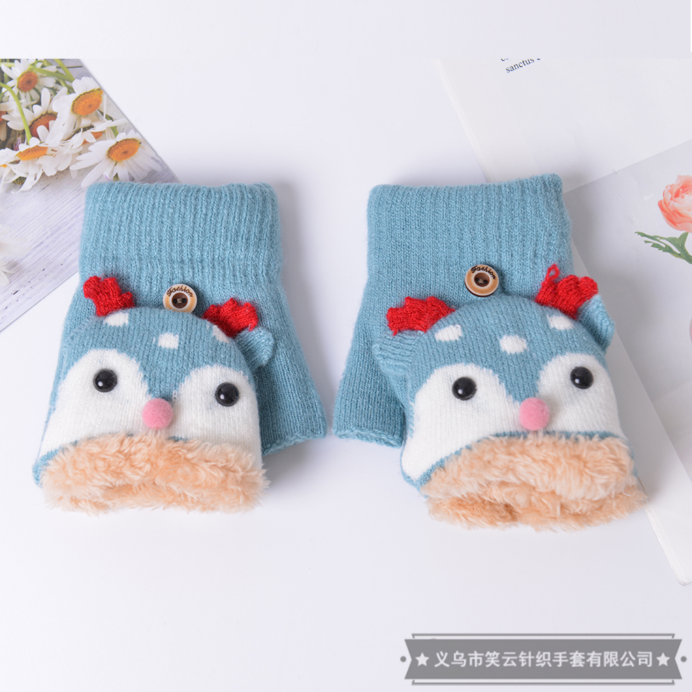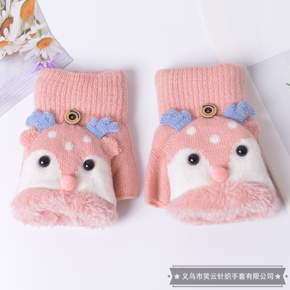 女士翻盖手套秋冬季冬天女孩子学生写字半指露指儿童可爱保暖加绒 English | 投诉