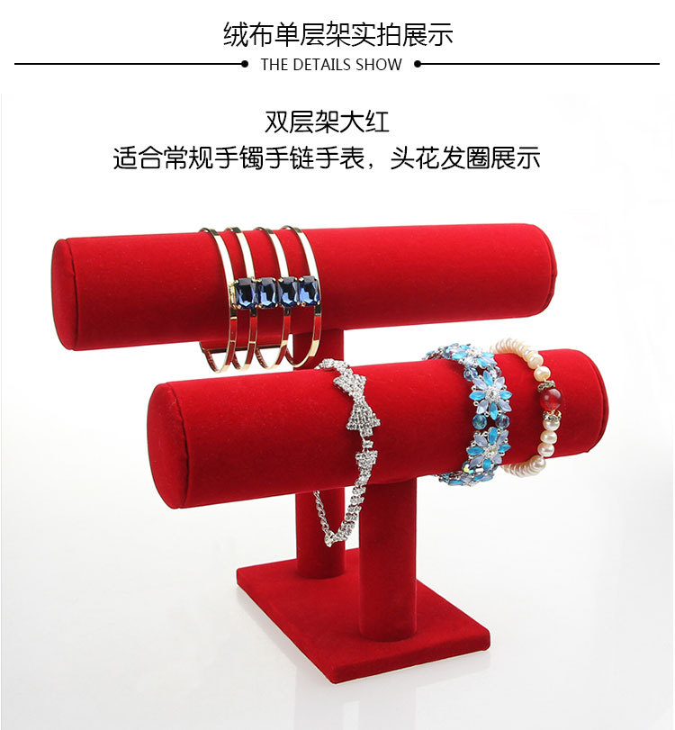 大红双层手镯架高贵绒面首饰架多色多功能包裹手链手表饰品架