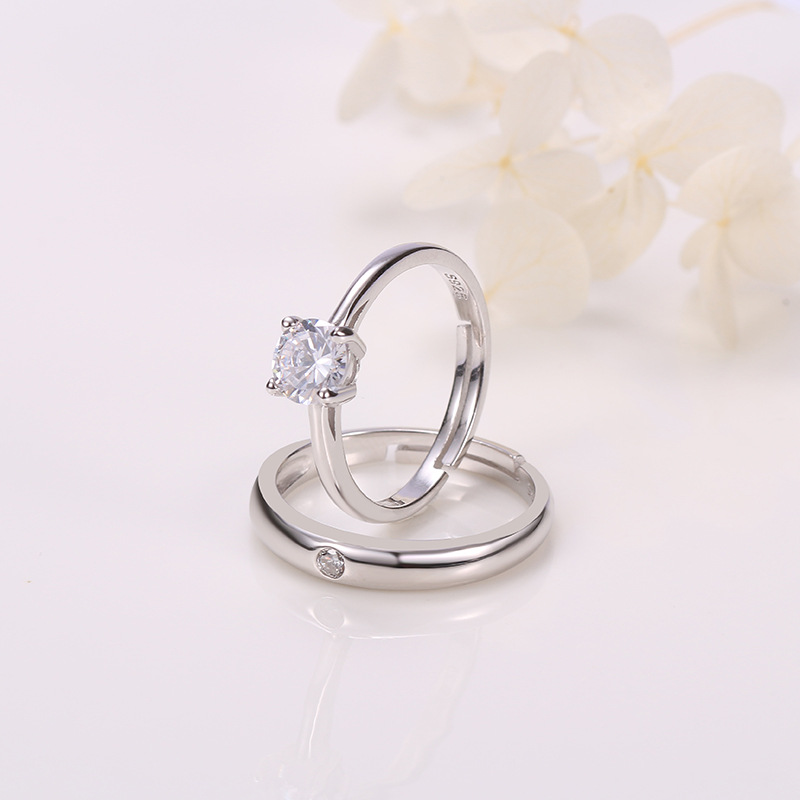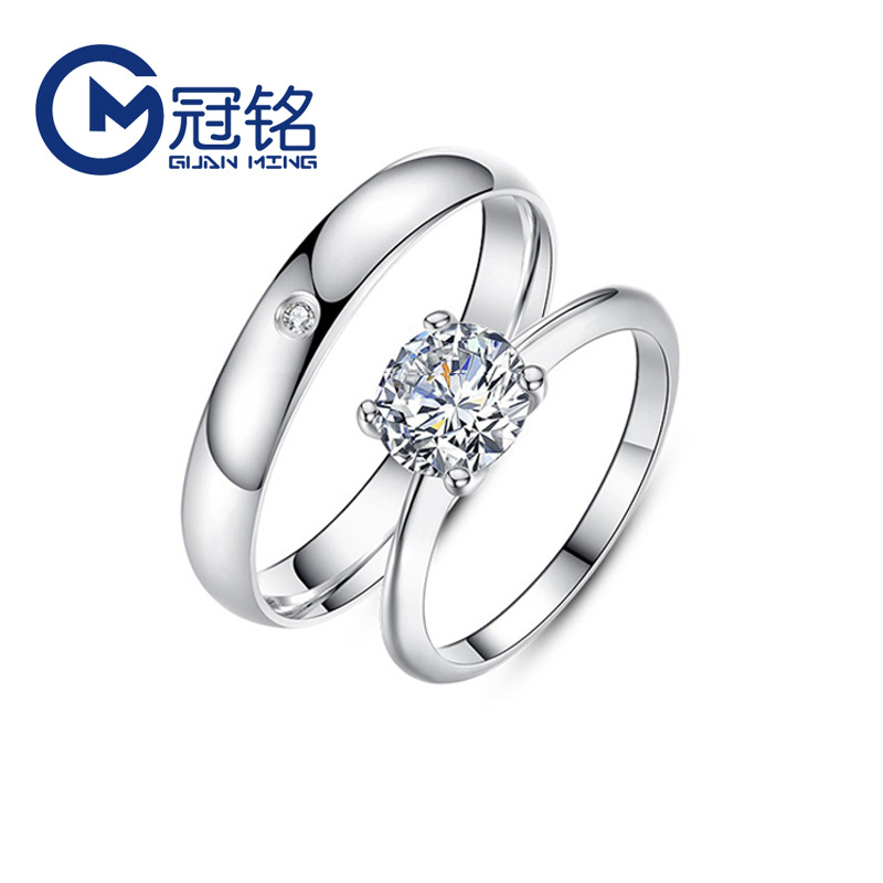 冠铭银饰 S925银结婚戒指四爪时尚情侣对戒指环日韩饰品生日礼物 English | 投诉
