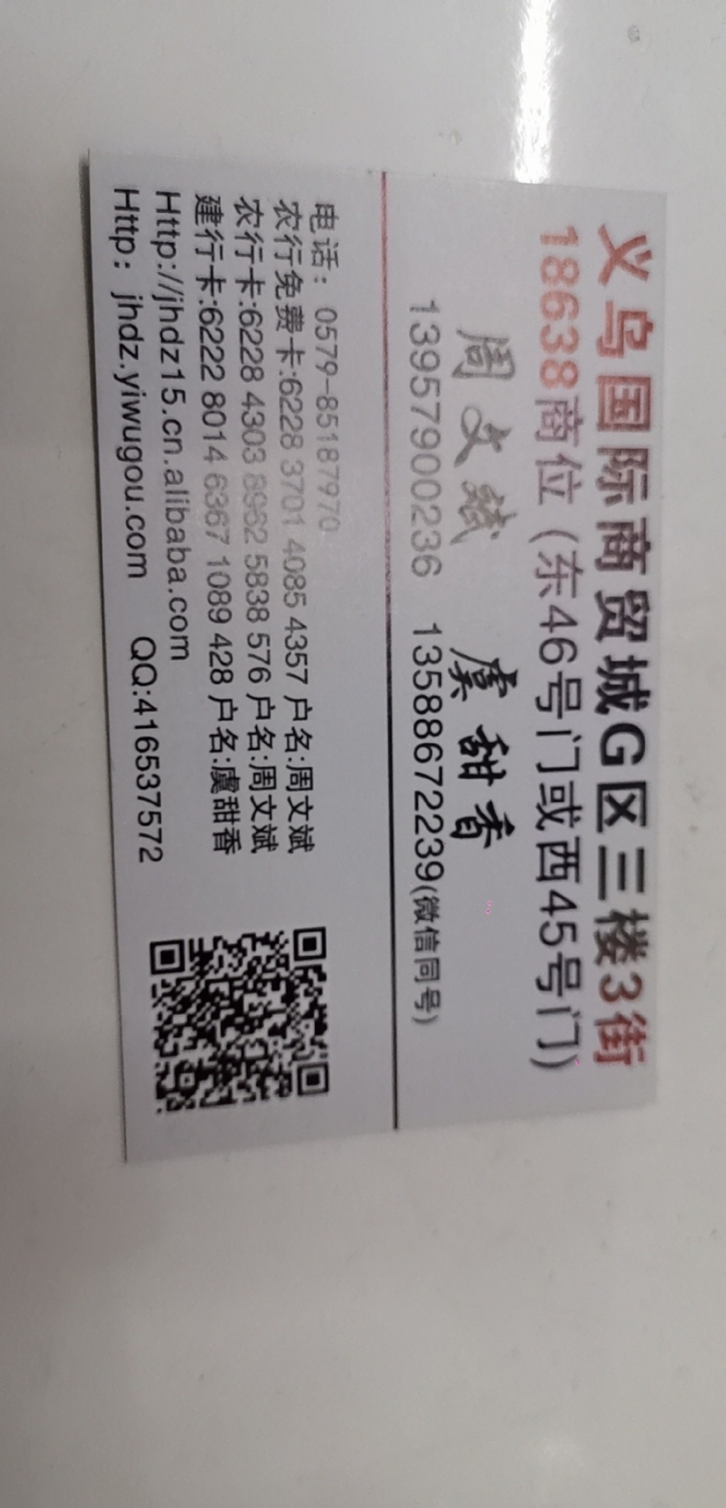义乌国际商贸城二区45门3楼3街18638A