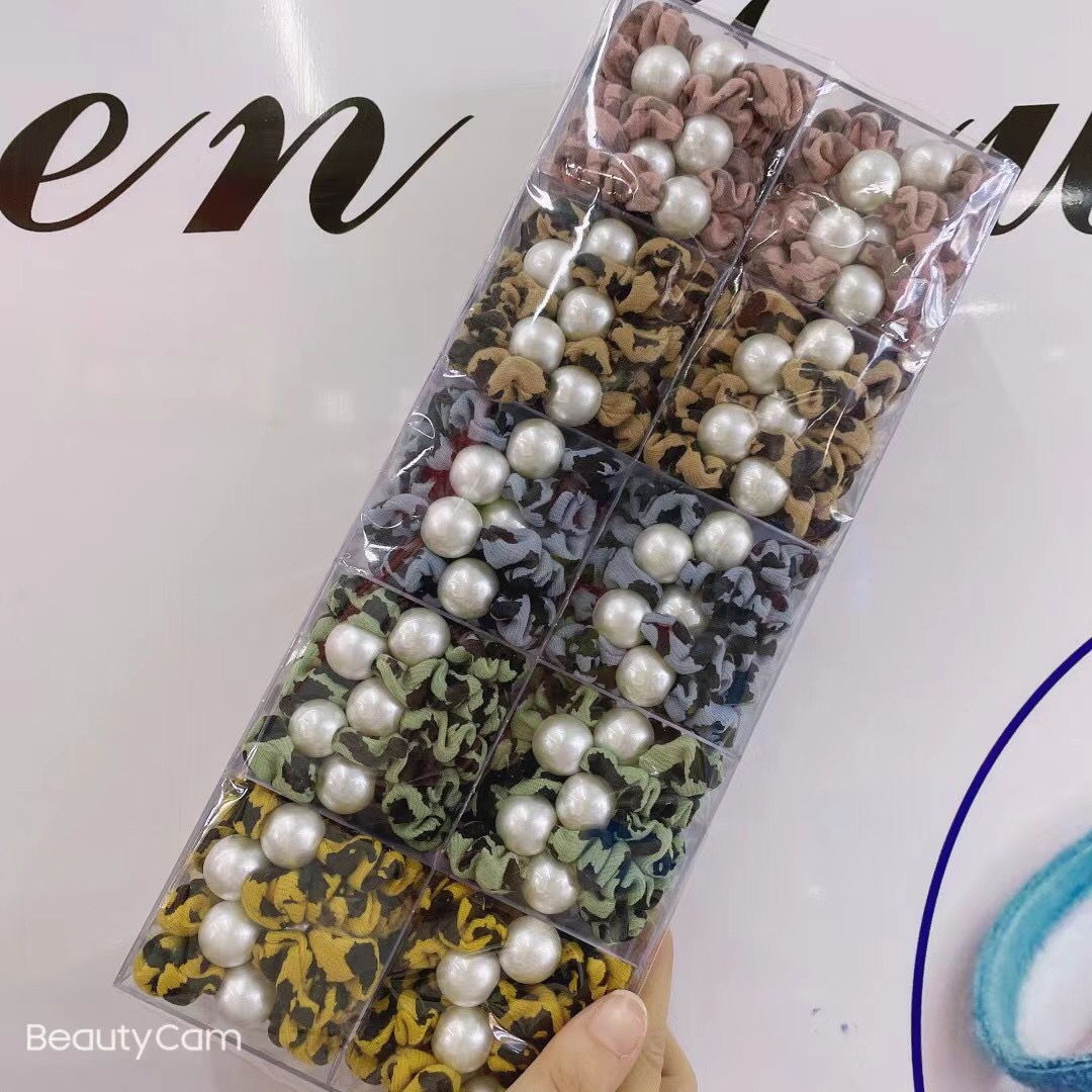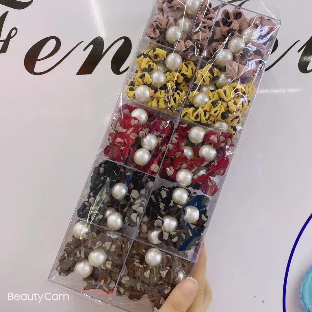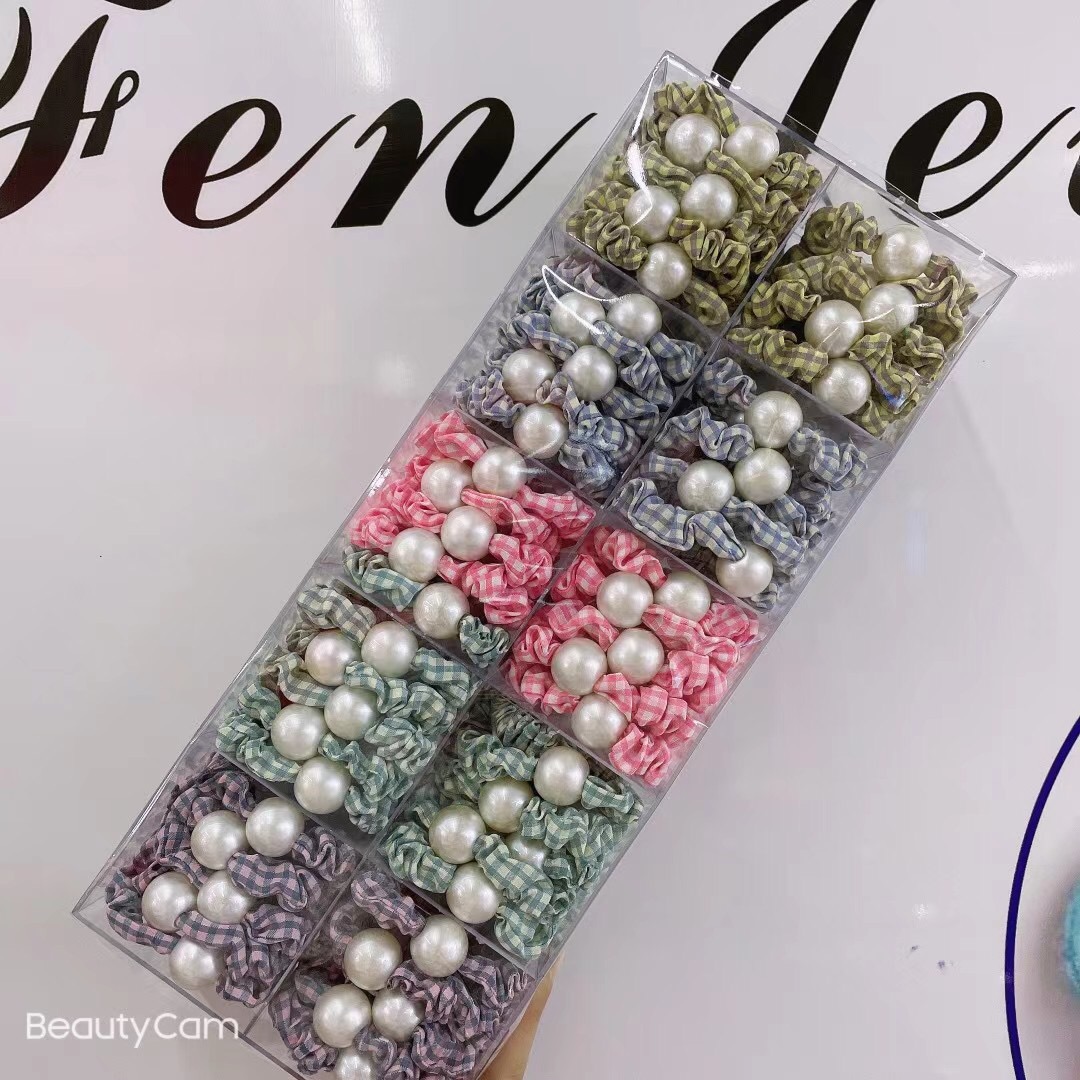 韩国春夏网红珍珠头绳皮筋可爱发圈布艺发绳头饰品盒装 English | 投诉