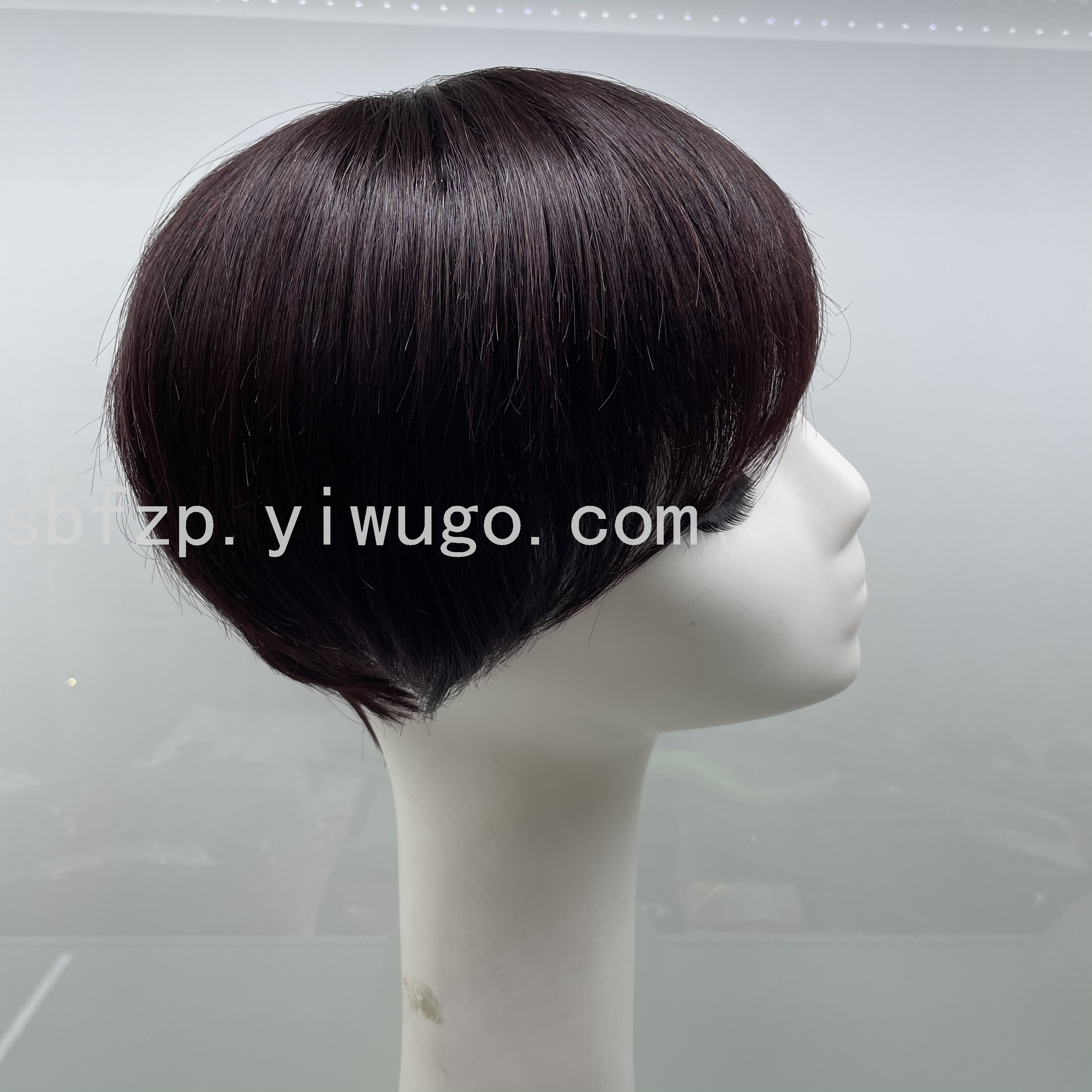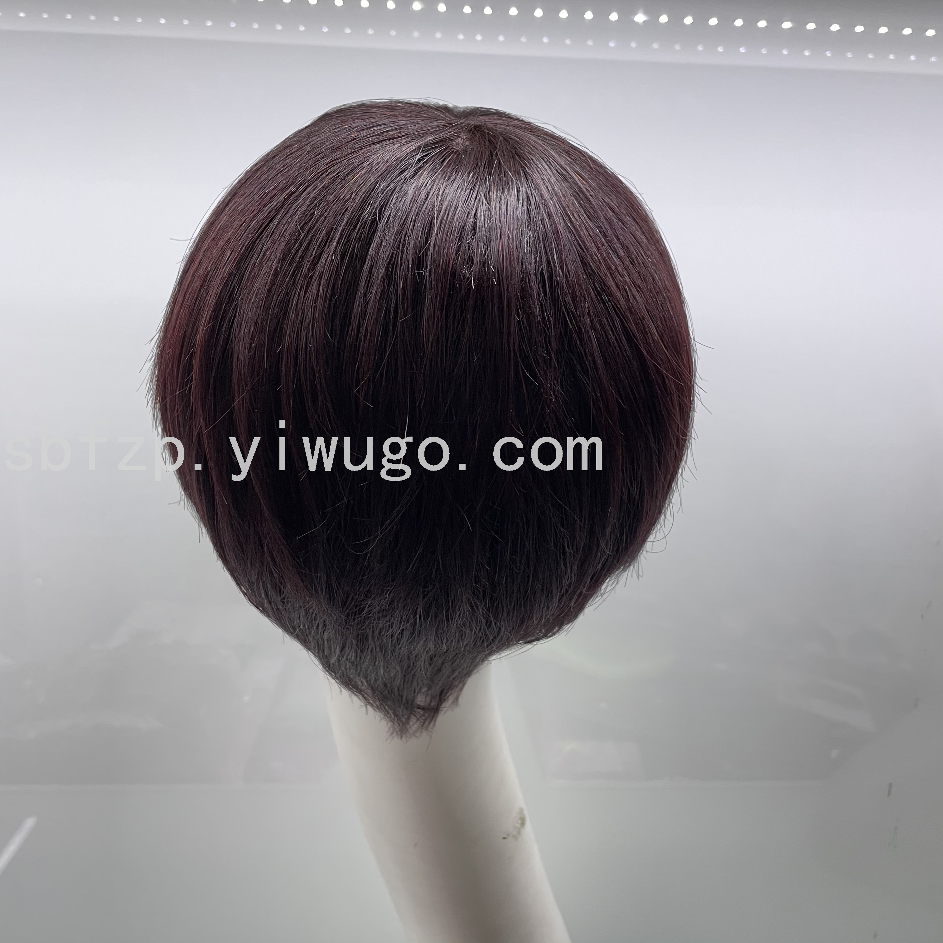 真人发头套短款酒红色机制头套短发