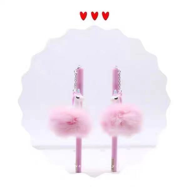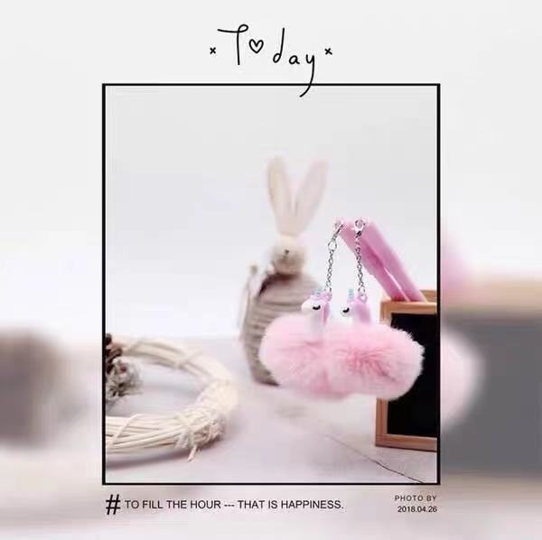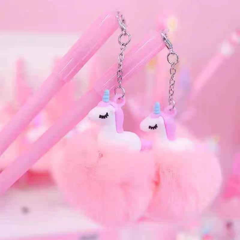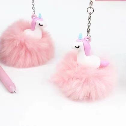 可爱独角兽毛绒绒挂件中性笔 可爱卡通挂件学生创意文具批发 English | 投诉