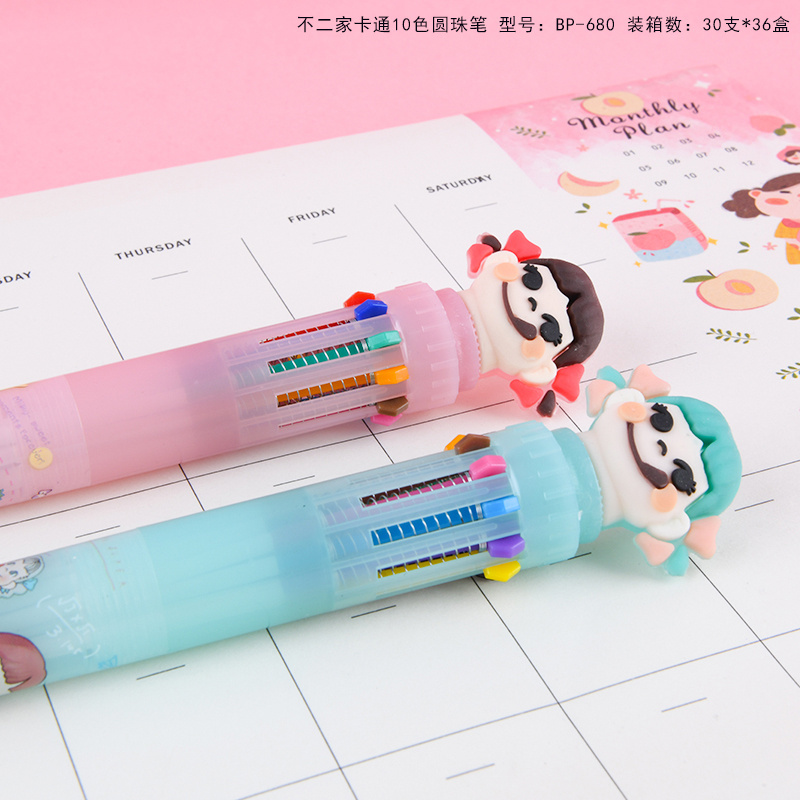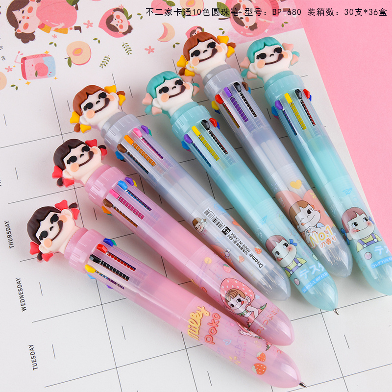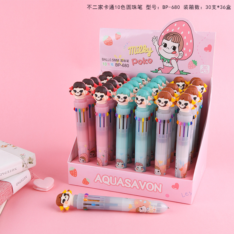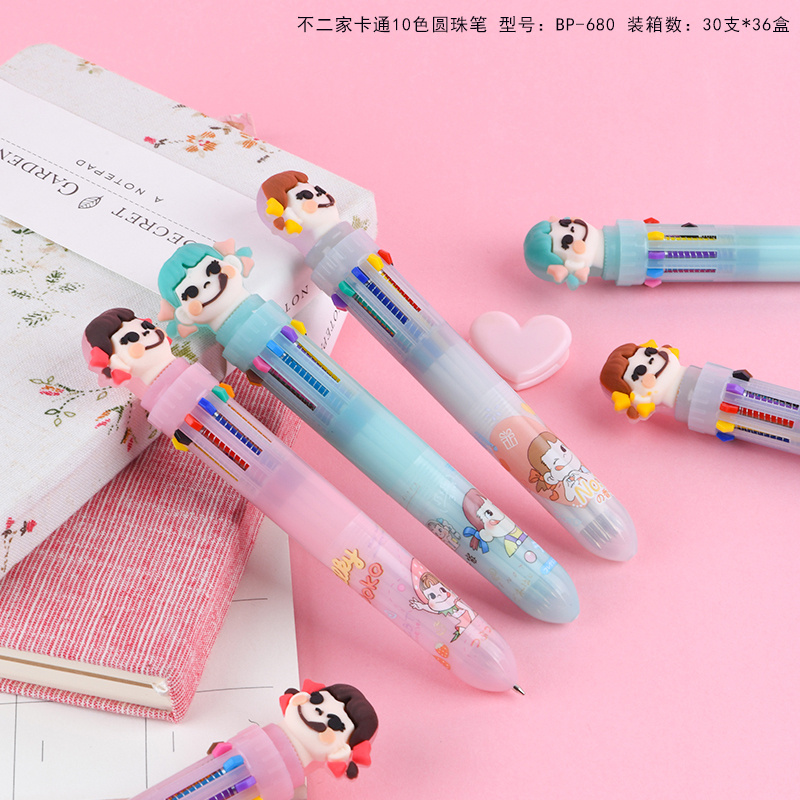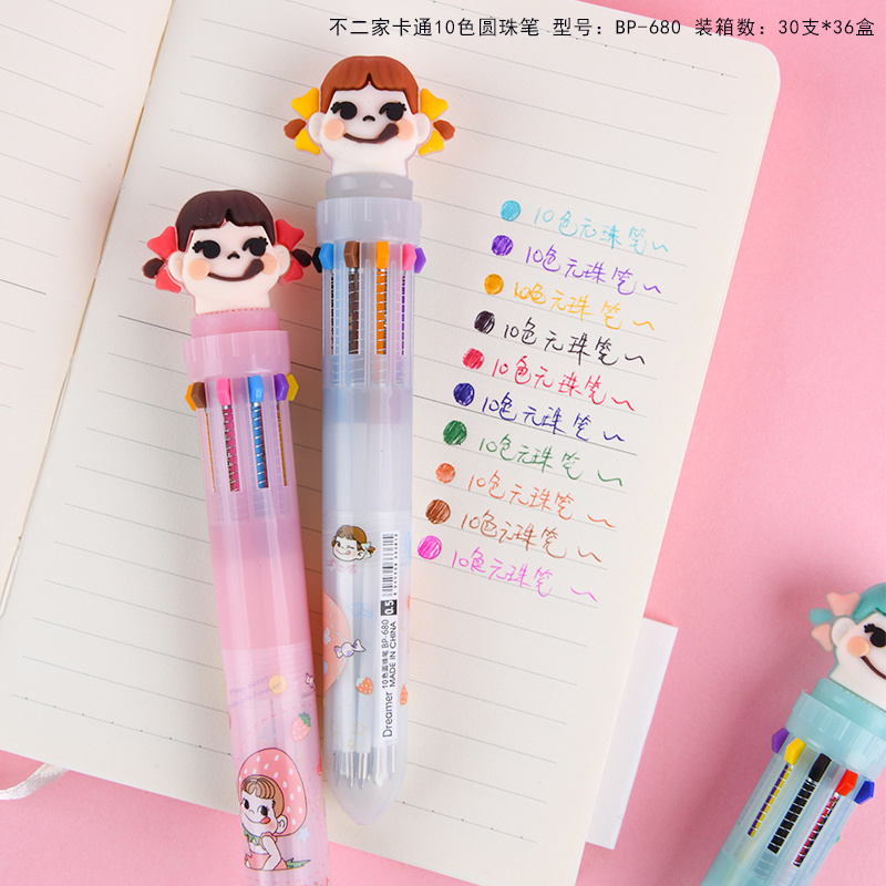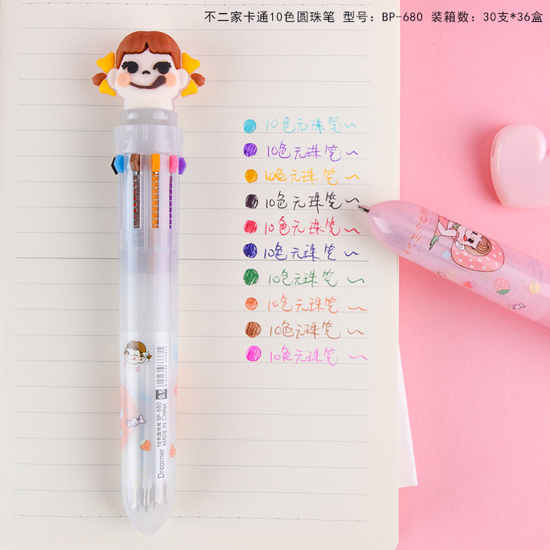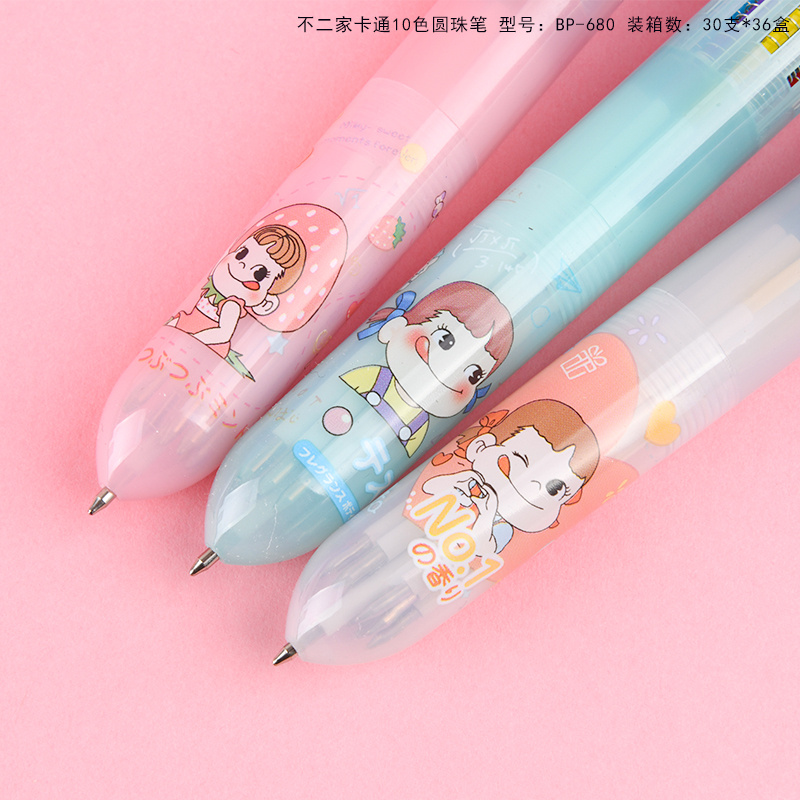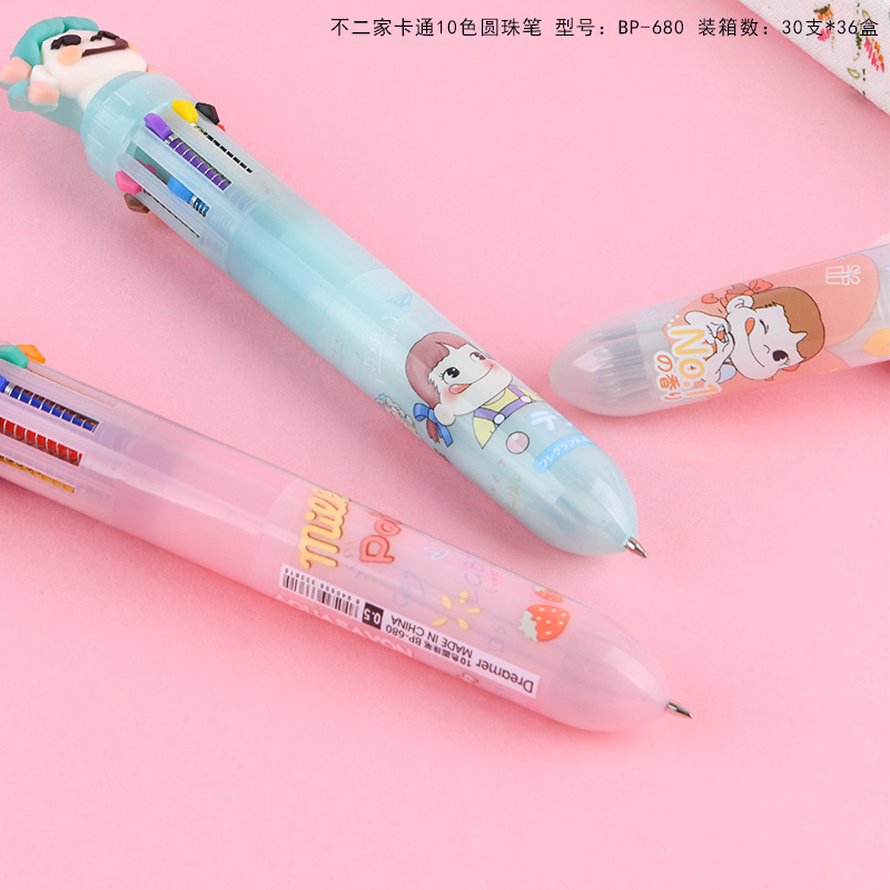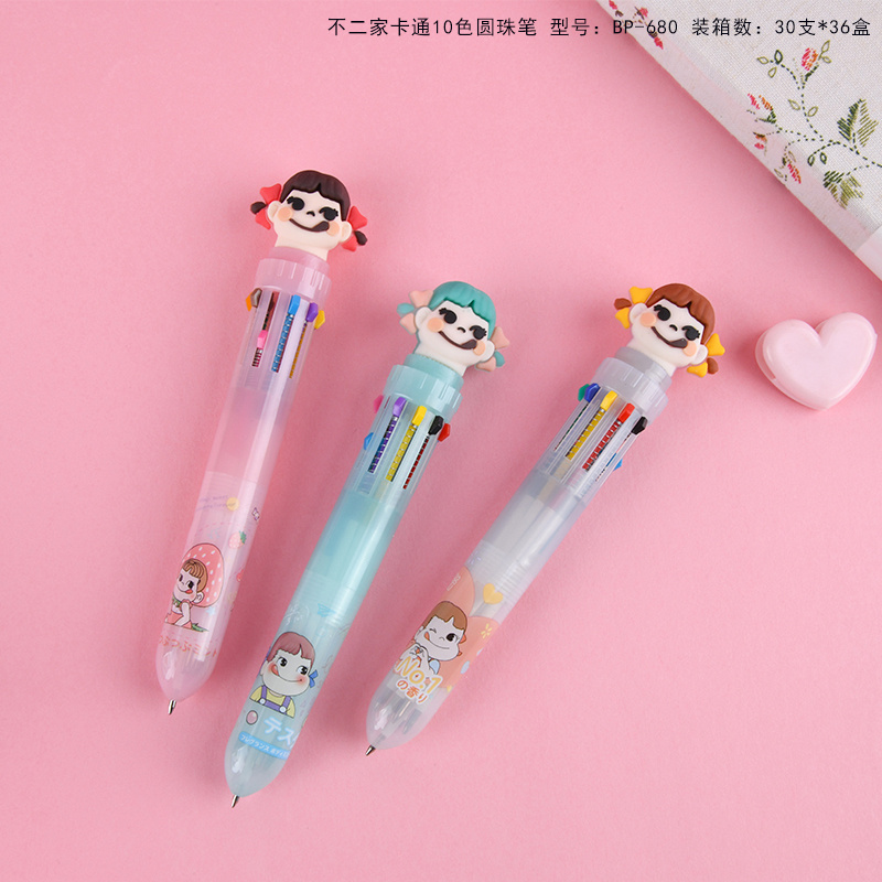 10色圆珠笔不二家少女心卡通多色按动圆珠笔学生多功能手账标记批