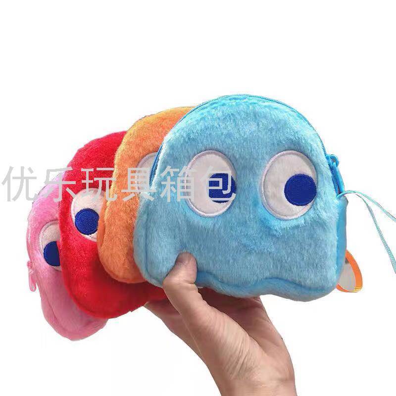 毛绒零钱包 吃豆豆卡通钥匙扣收纳袋 毛绒耳机包