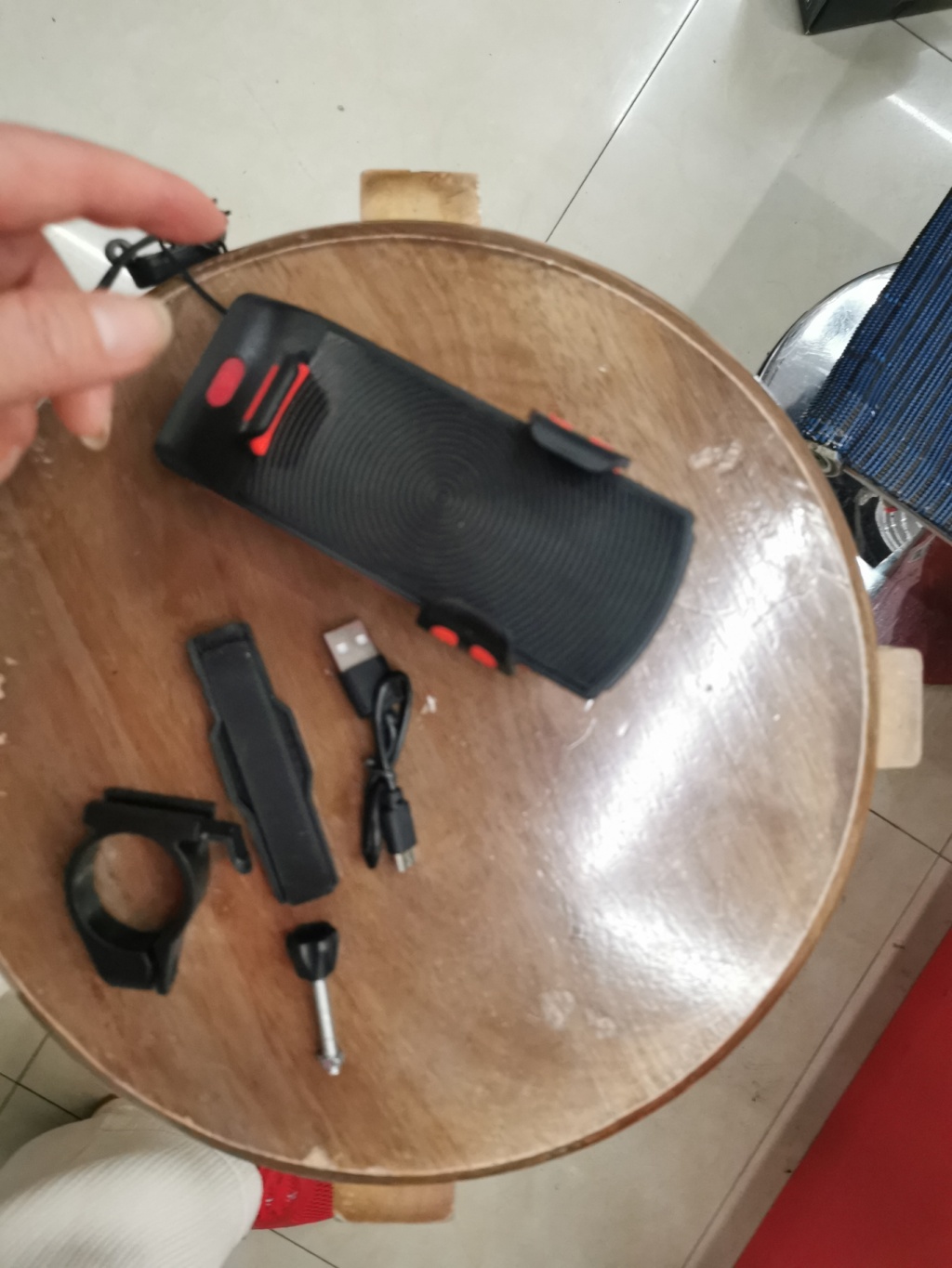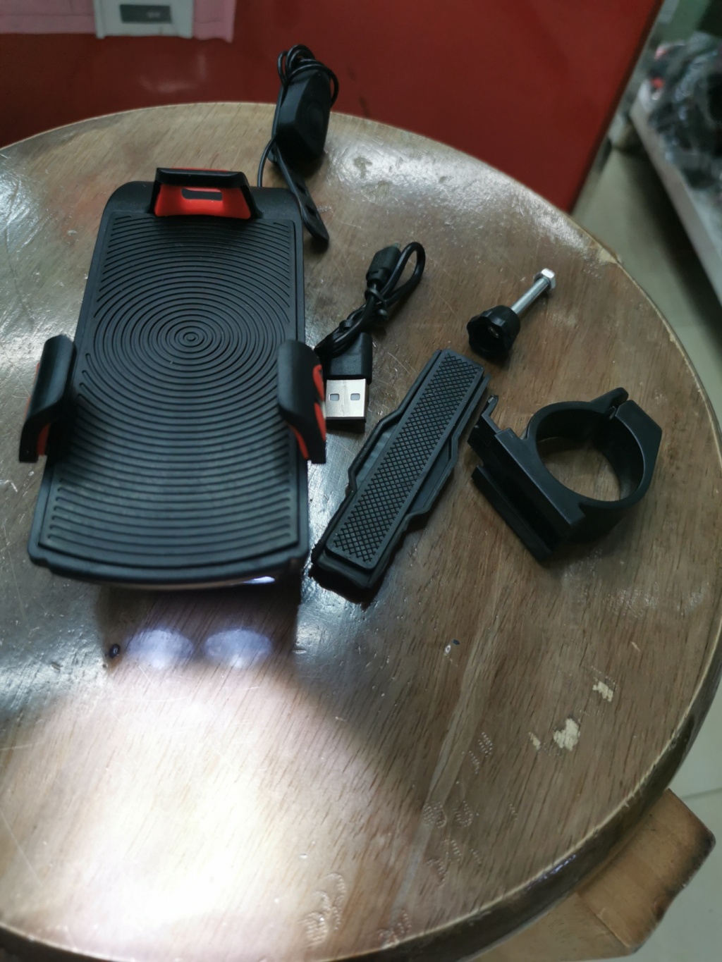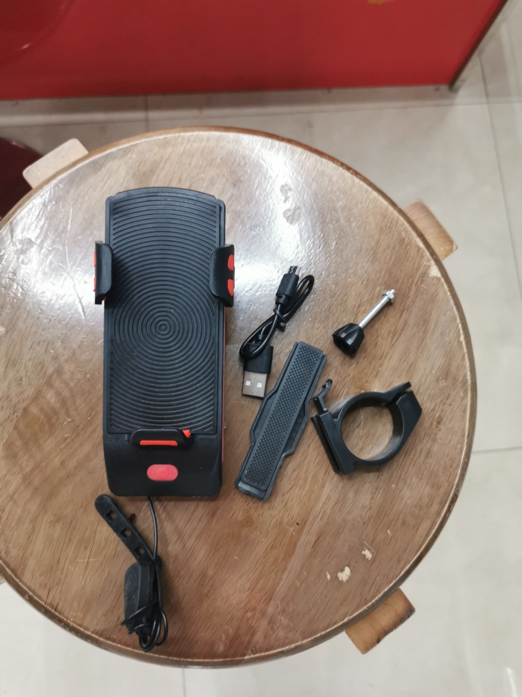前面为2LED光源,强光,弱光,爆闪,一物多用,可以把手机放上面,还可以给手机应急充电,带喇叭