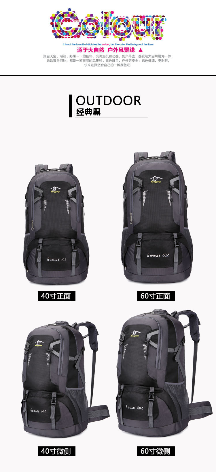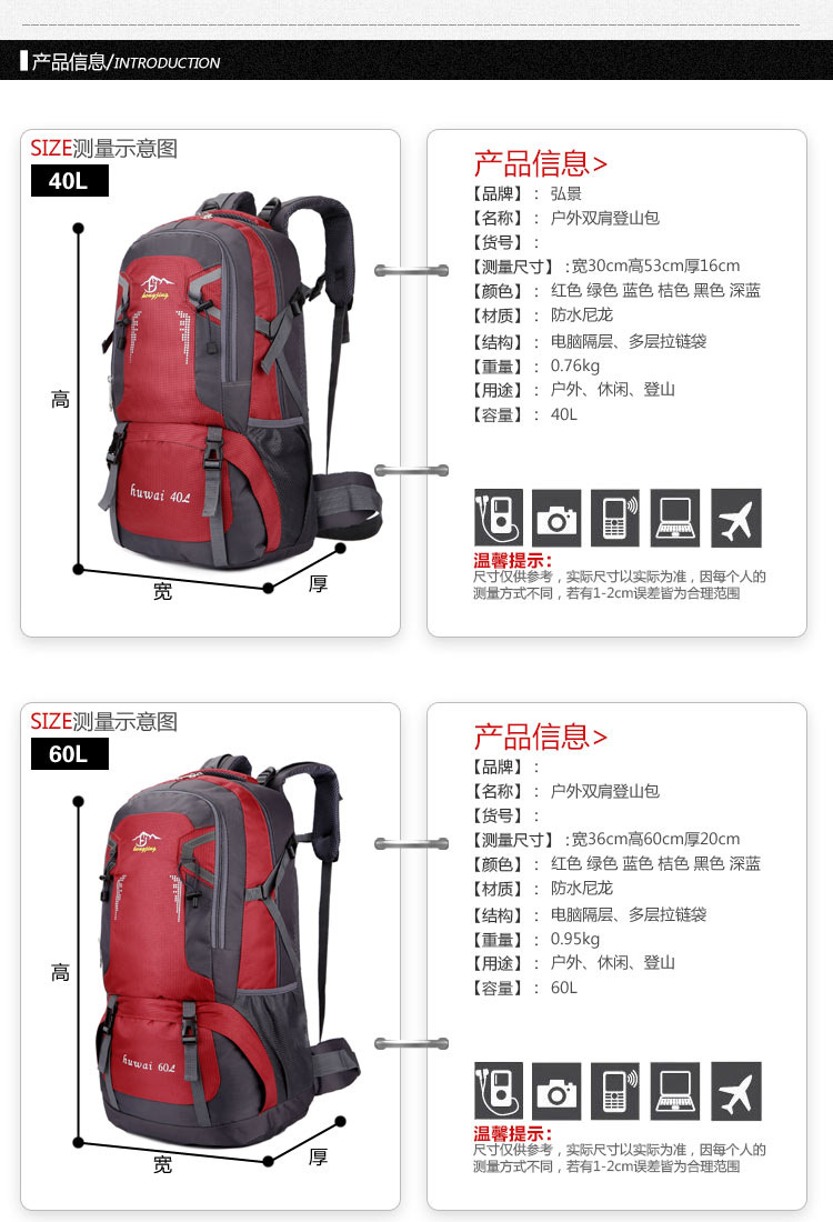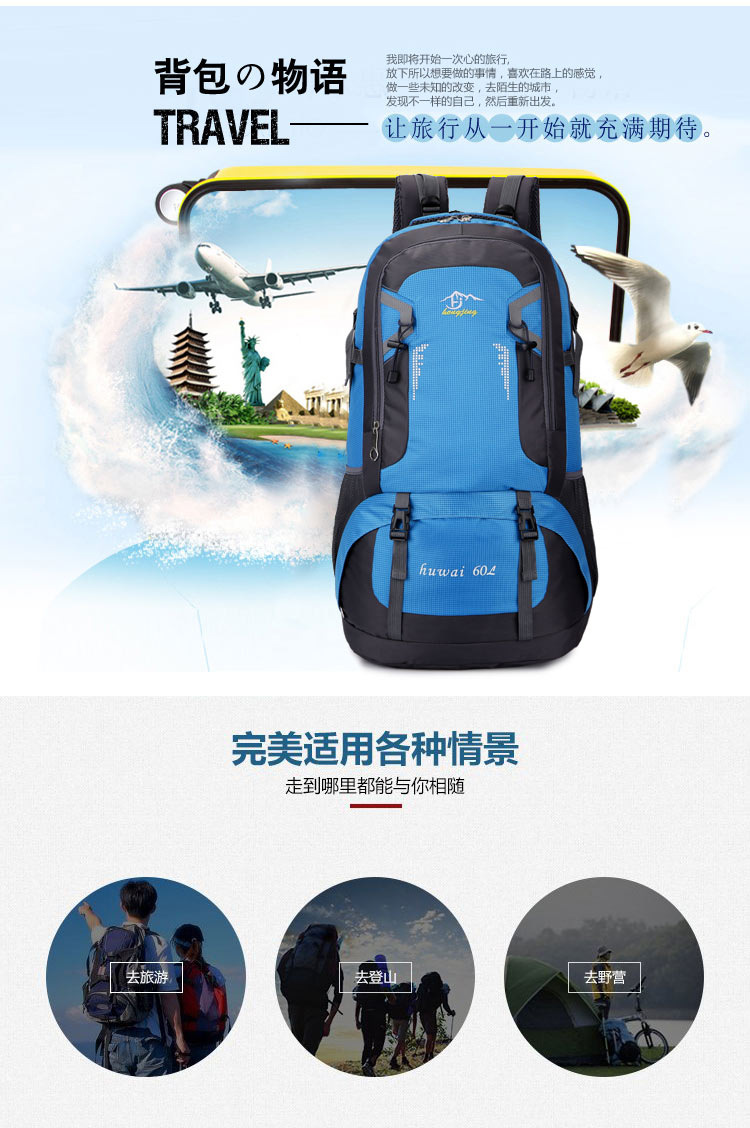 60L大容量户外登山包防水尼龙旅行包情侣双肩休闲男女运动背包 投诉