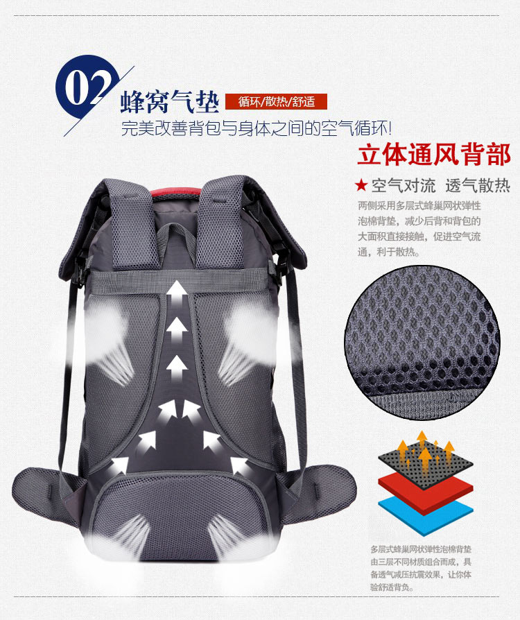 60L大容量户外登山包防水尼龙旅行包情侣双肩休闲男女运动背包