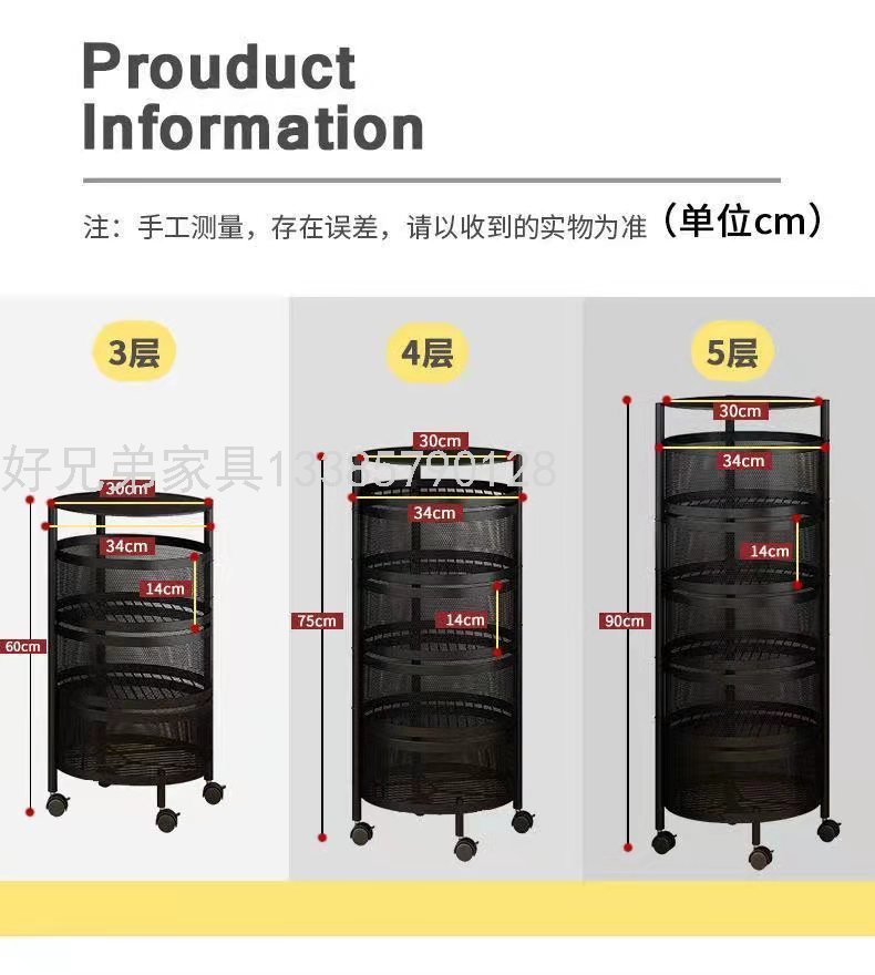 厨房置物架落地多层蔬菜圆柱形多功能放菜蓝子旋转储物收纳筐带轮 投诉