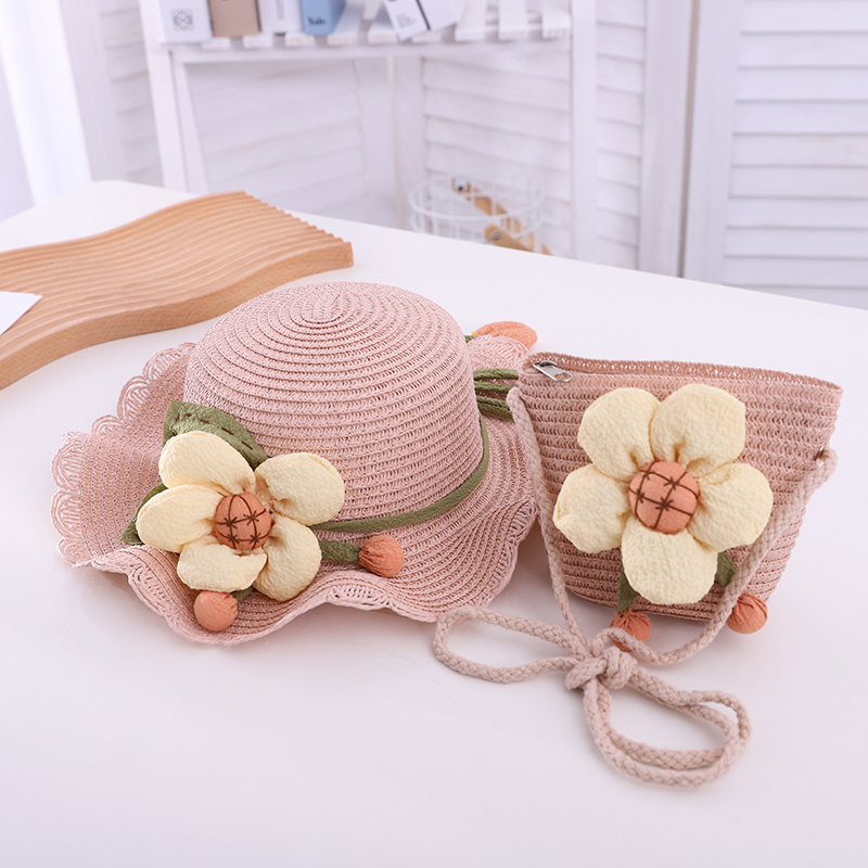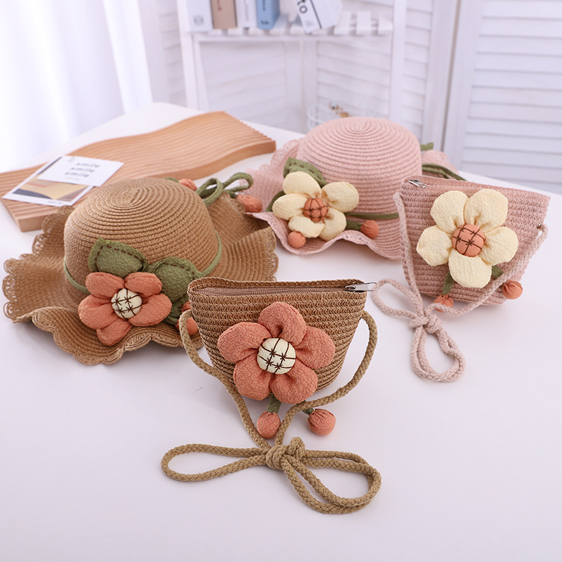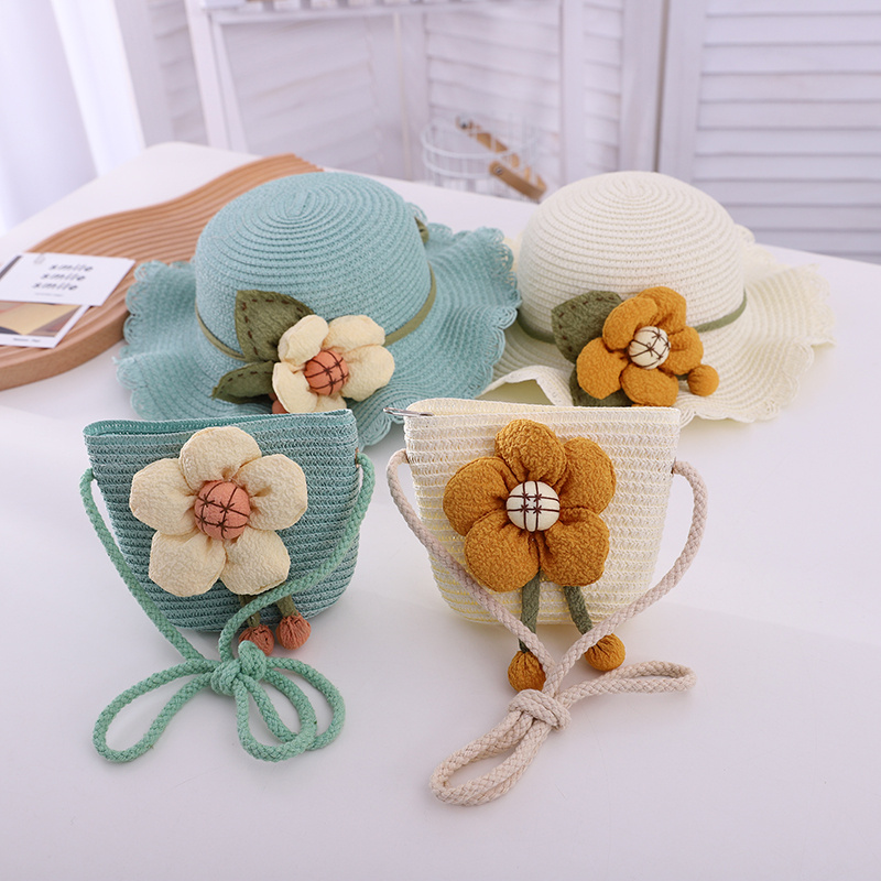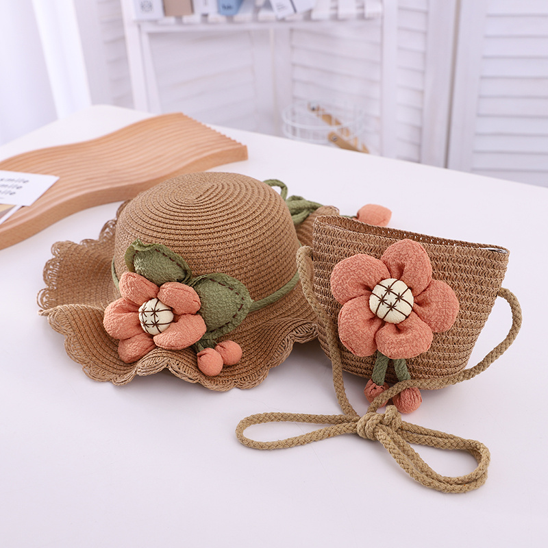 大花花套件帽子儿童帽亲子帽草帽