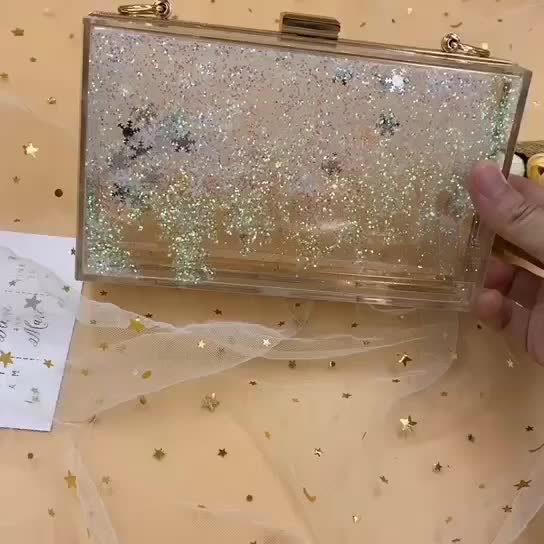 新款长方形亚克力站立透明液体晚宴包小包包单肩斜挎手拿 投诉
