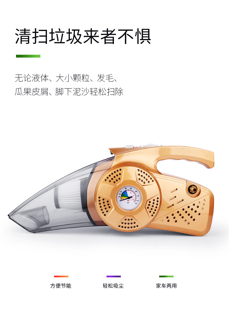 厂家供应新款12V车用手提式吸尘器充气泵 四合一车载吸尘器 投诉