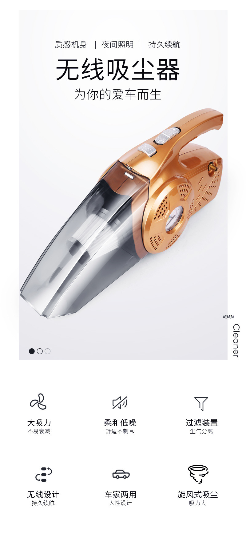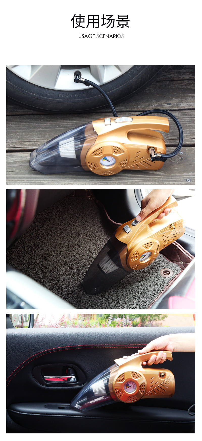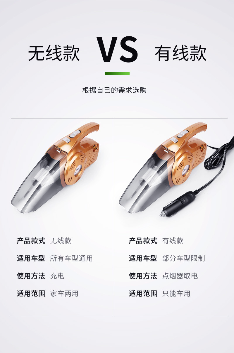 厂家供应新款12V车用手提式吸尘器充气泵 四合一车载吸尘器