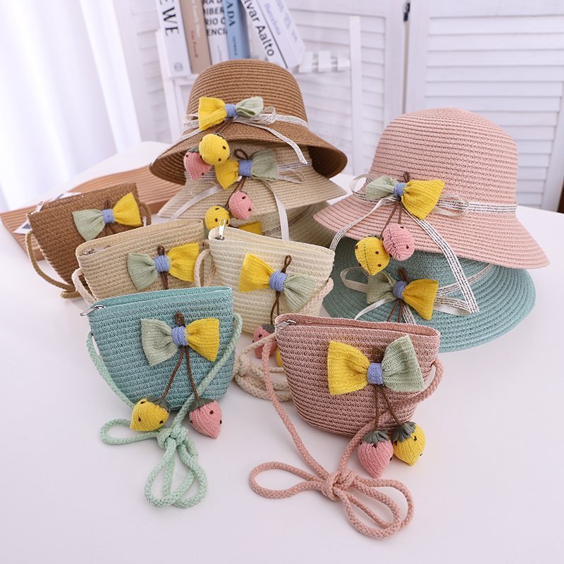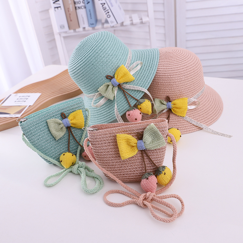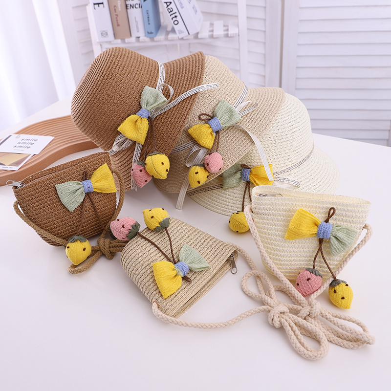 2021款亲子草莓蝴蝶结套件小孩帽子可爱帽子