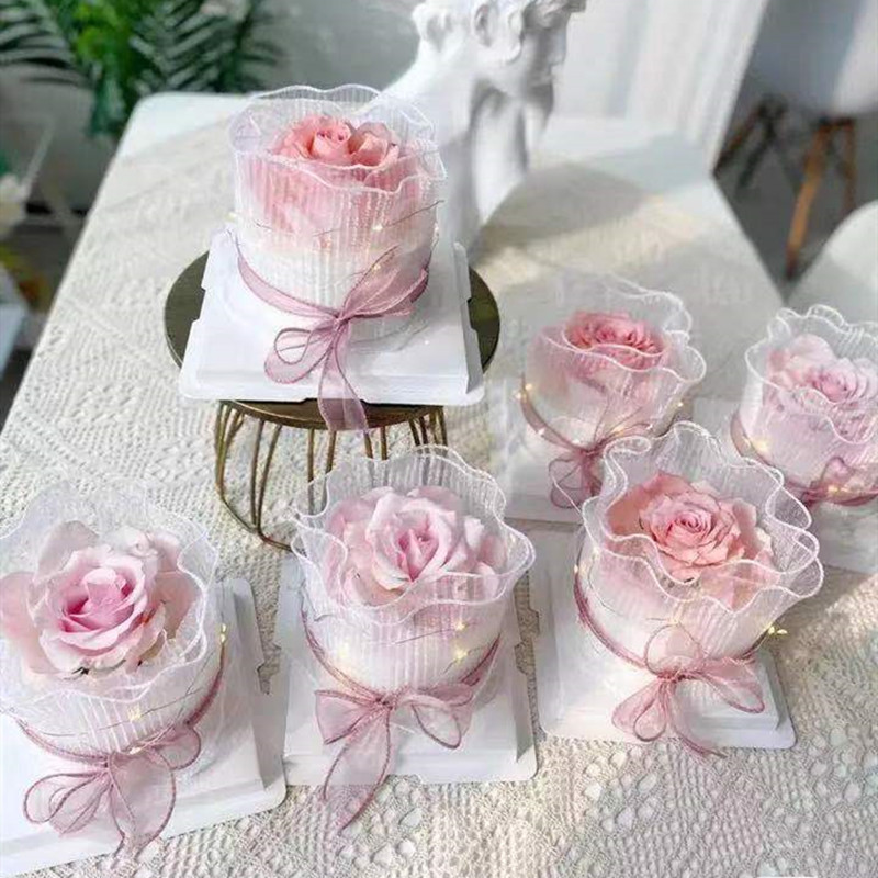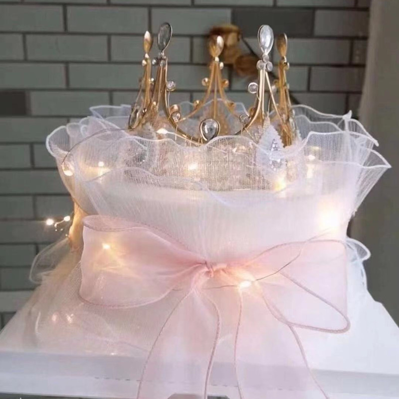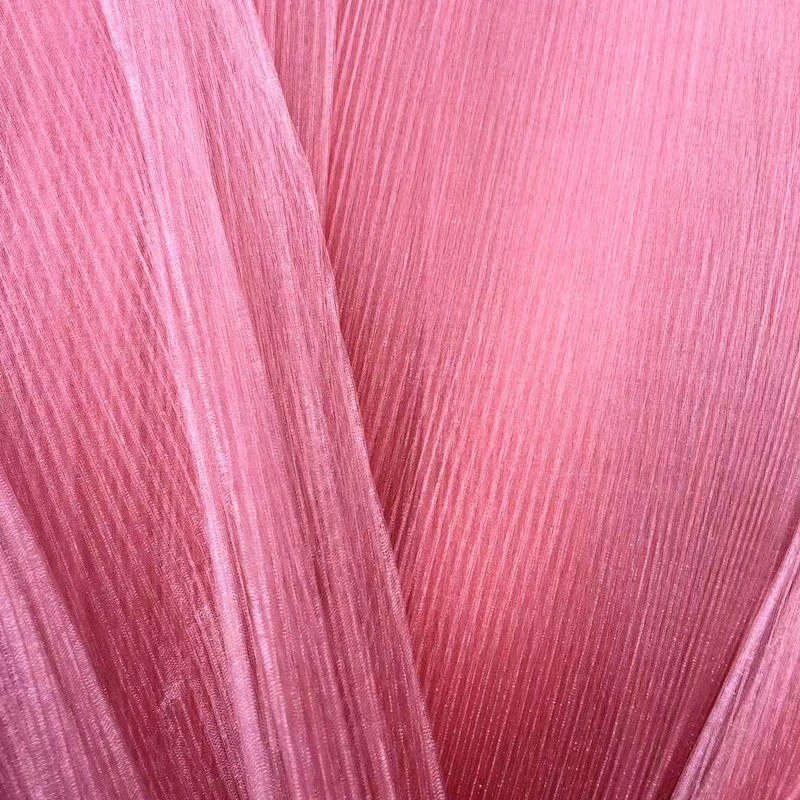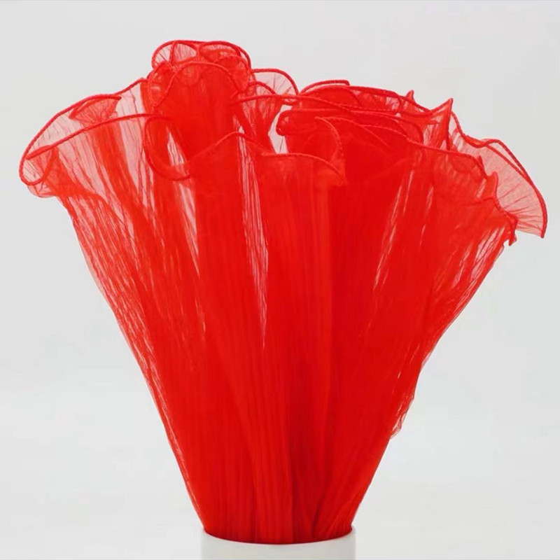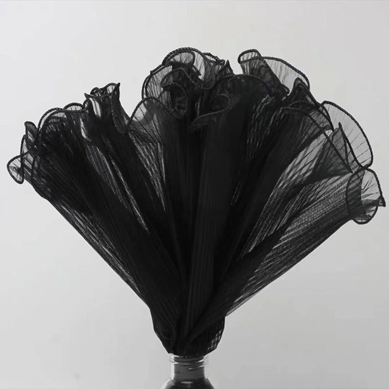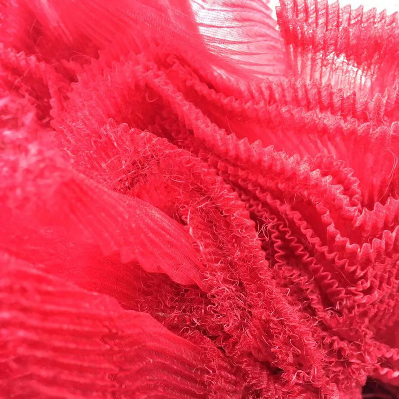 该款布料底布为欧根纱,经过压褶(压折)处理,形成纹理清晰,手感硬挺的布料,可用于新款鲜花包装,蛋糕装饰,婚礼现场装饰等等。