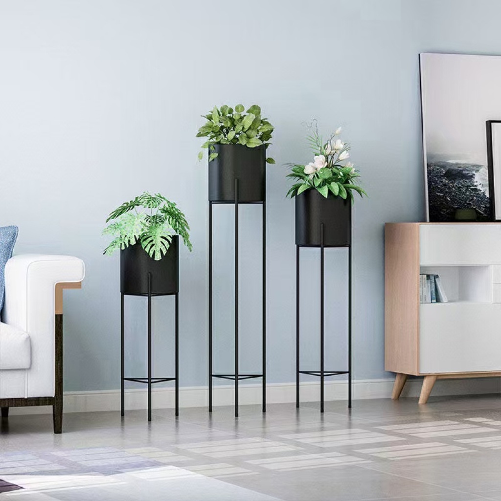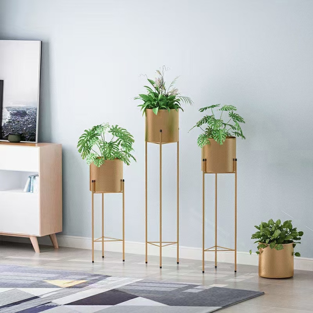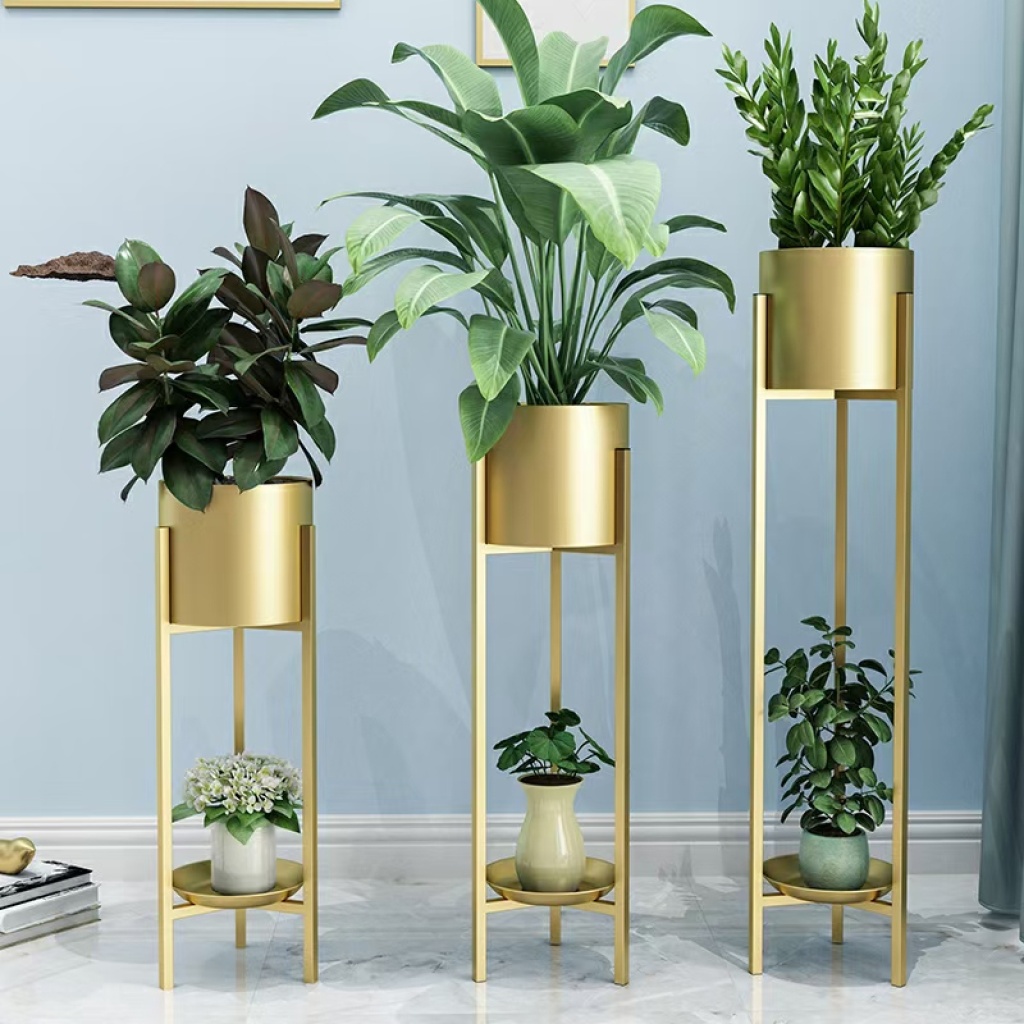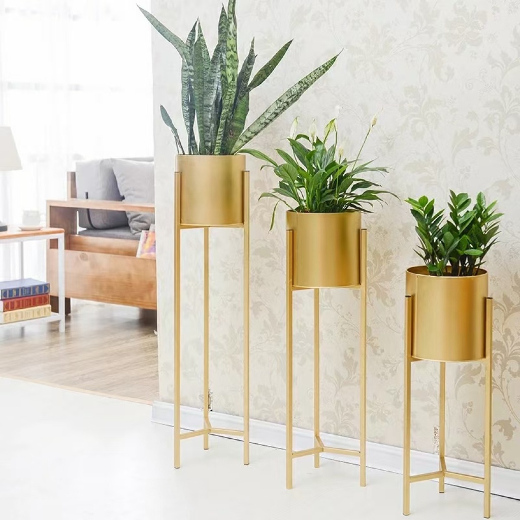 金色铁艺花架新中式盆栽花几三角简约花几盆栽摆件落地花盆栽室内