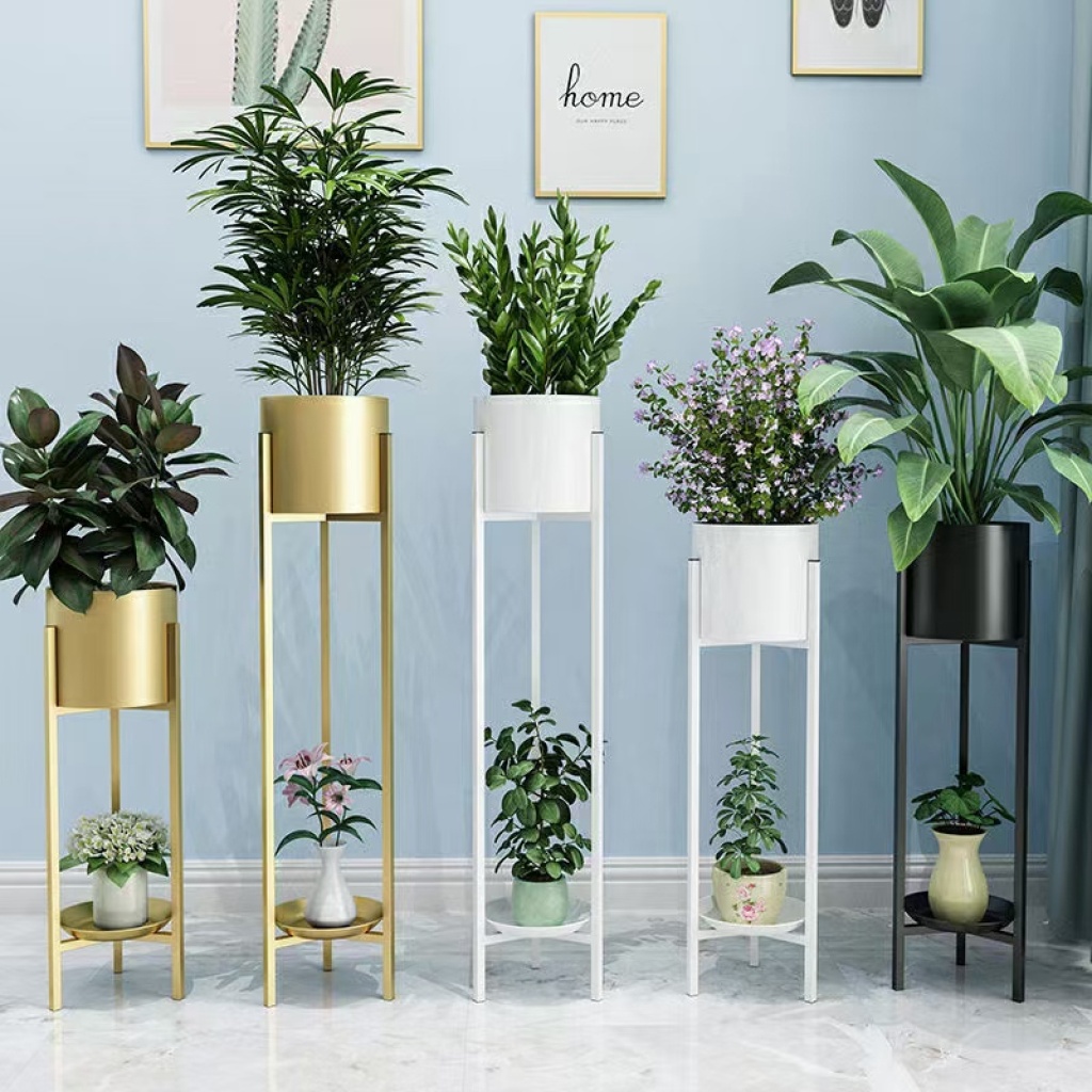 金色铁艺花架新中式盆栽花几三角简约花几盆栽摆件落地花盆栽室内 投诉