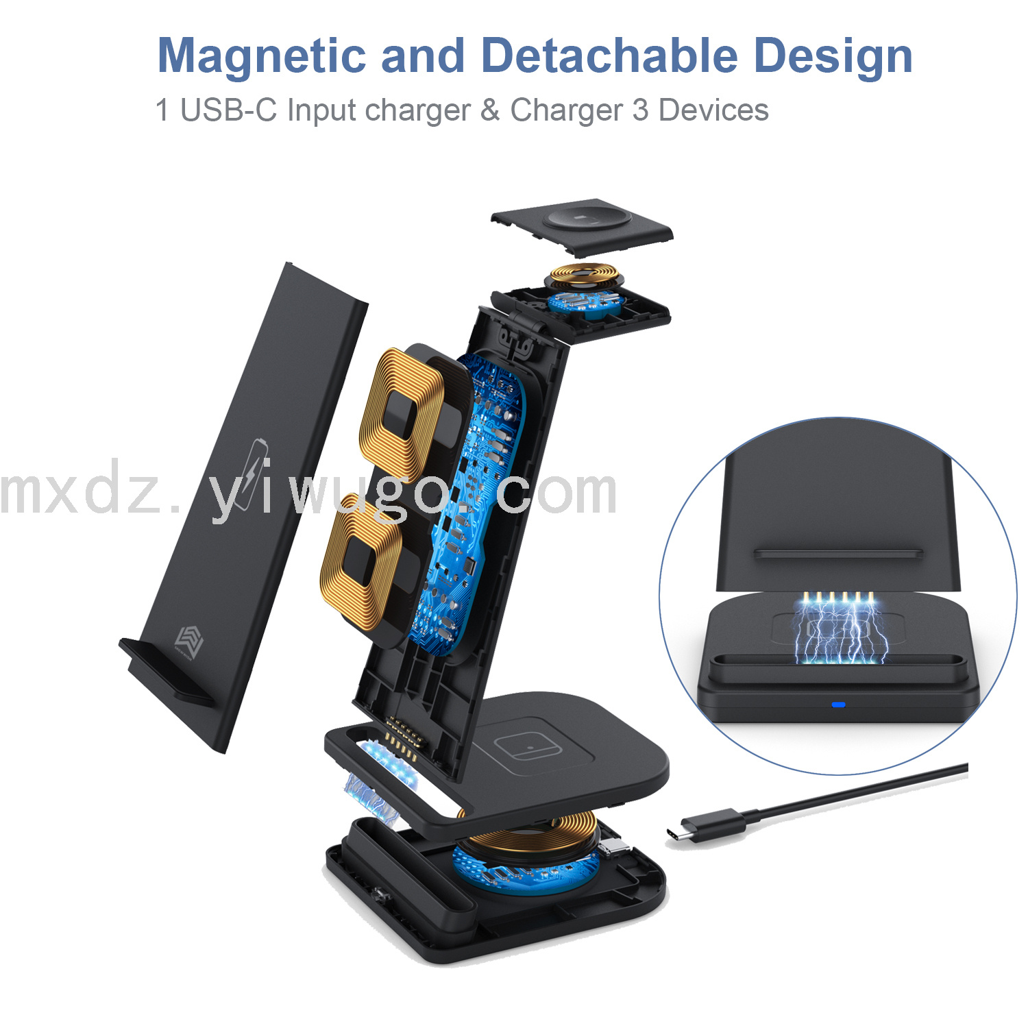 产品名称:三合一折叠无线充电器