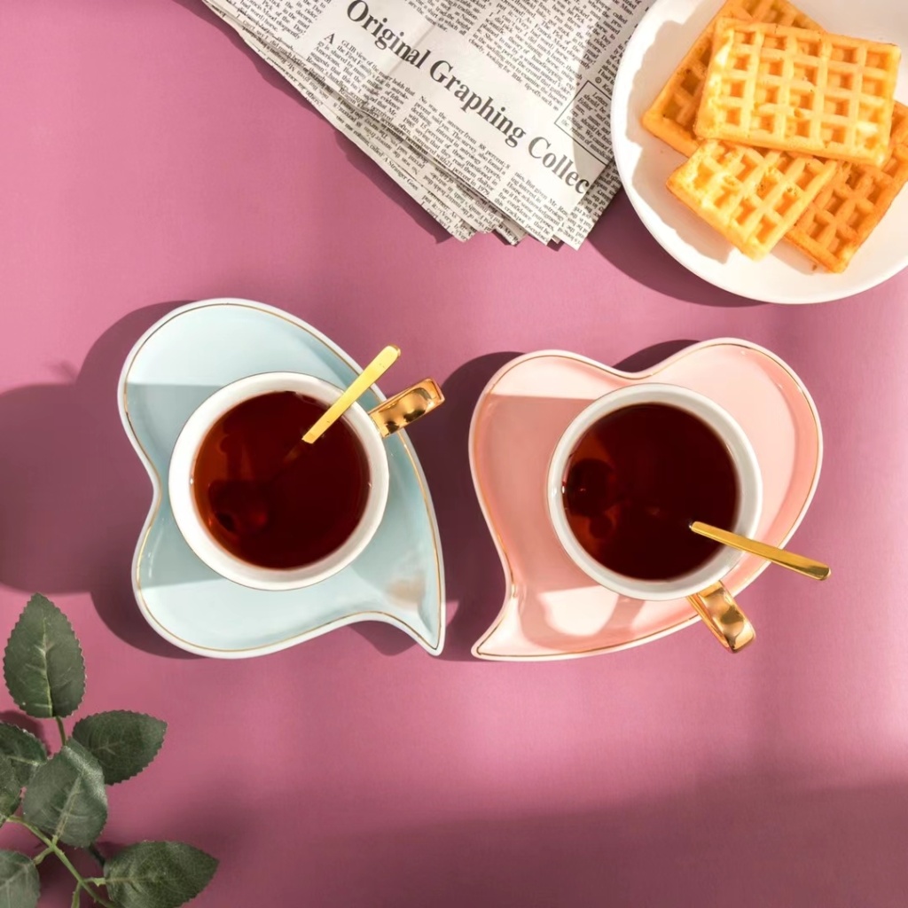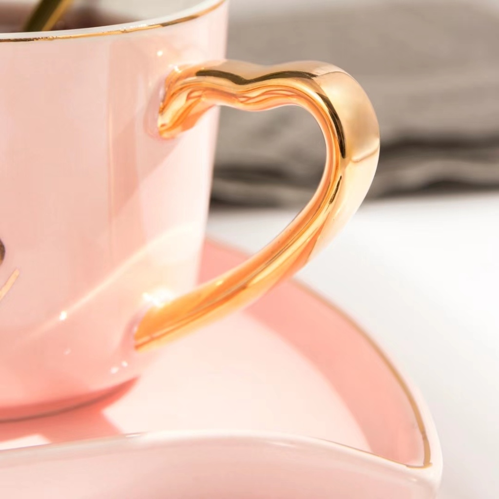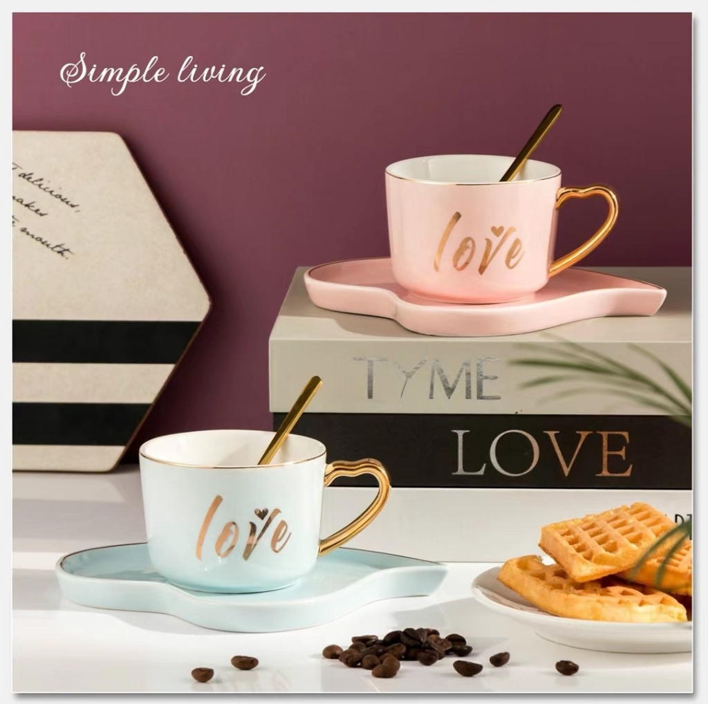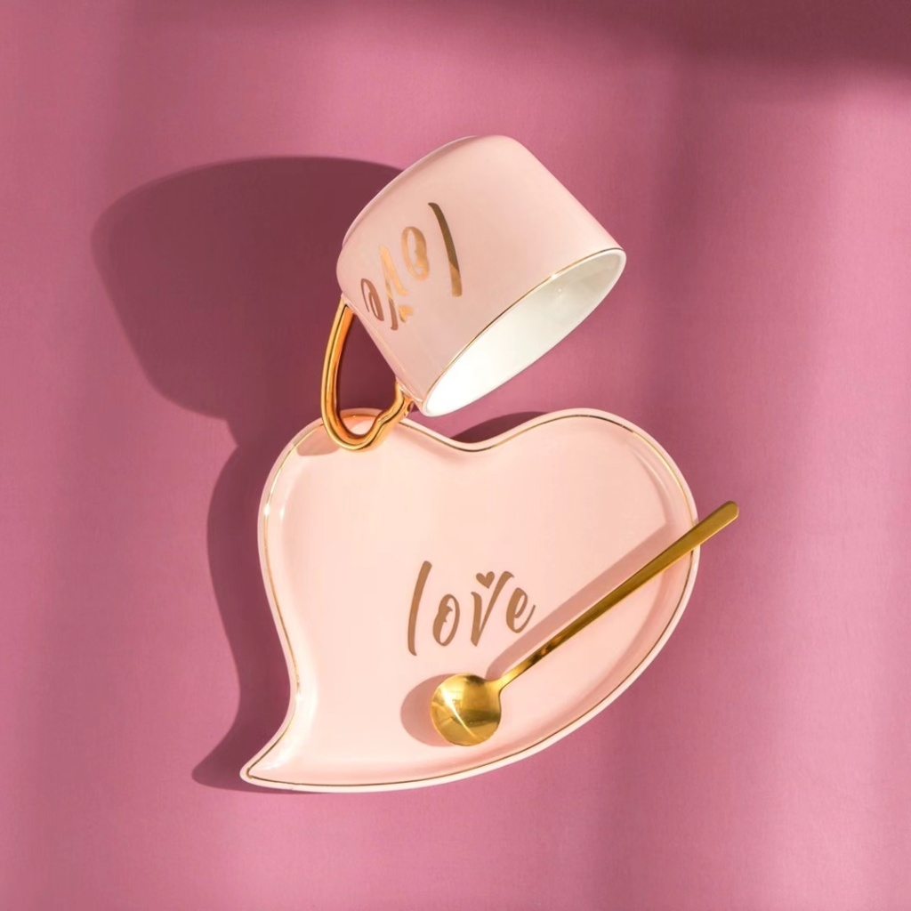 简约小清新爱心早餐牛奶咖啡杯下午茶情侣杯镀金手柄三件套