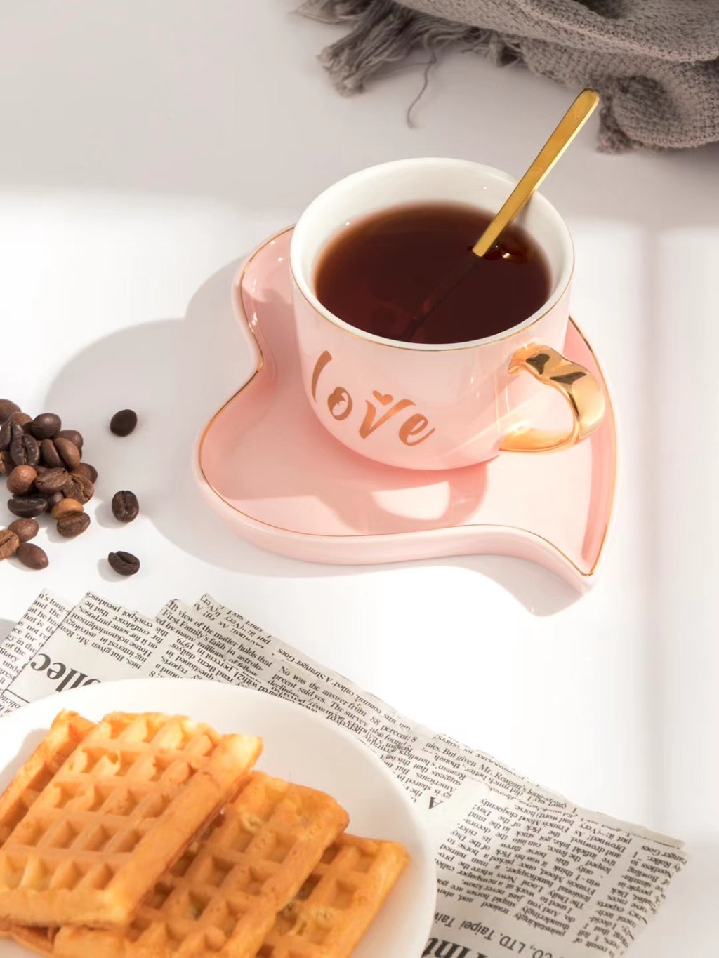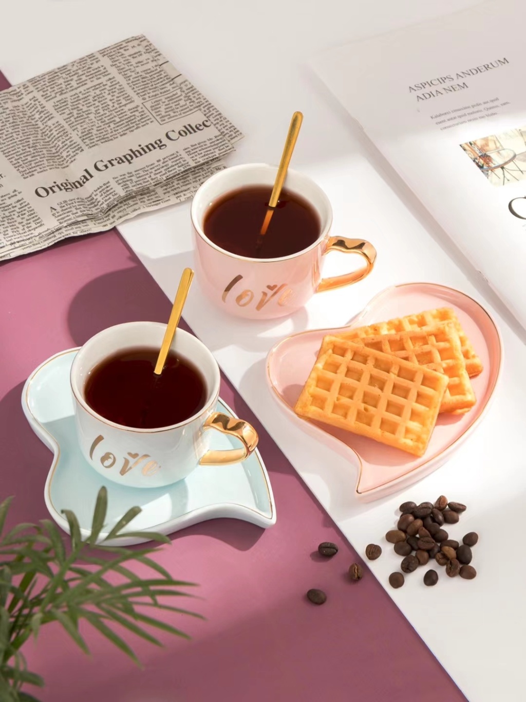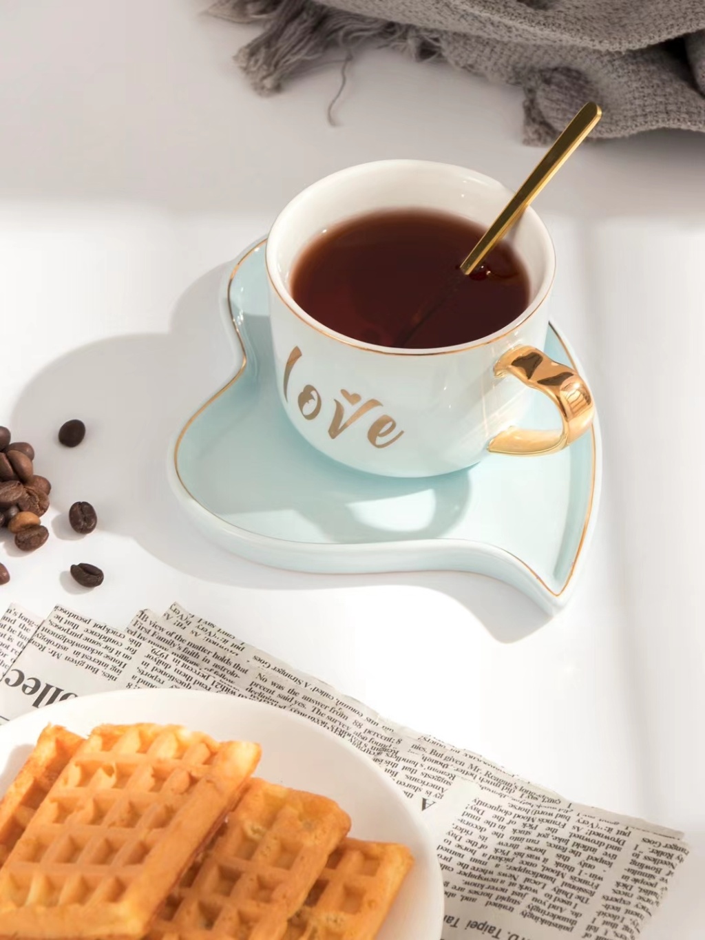 简约小清新爱心早餐牛奶咖啡杯下午茶情侣杯镀金手柄三件套