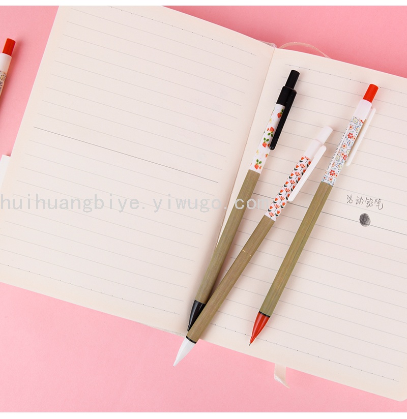 韩版卡通碎花铅笔学生创意卡通木纹铅笔跳动自动铅笔 投诉