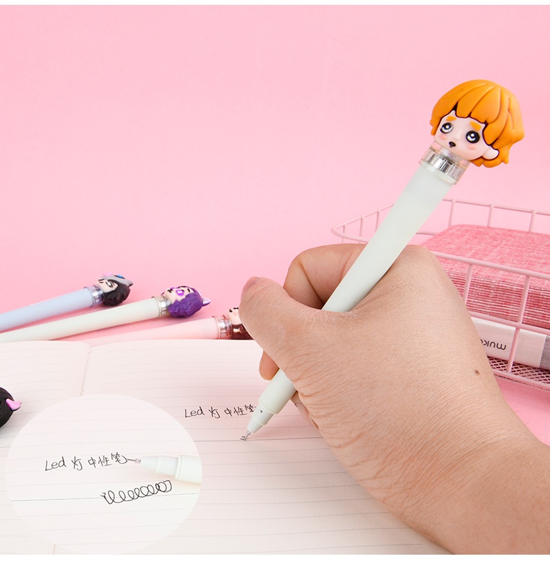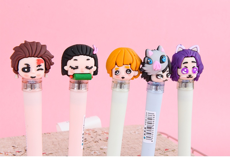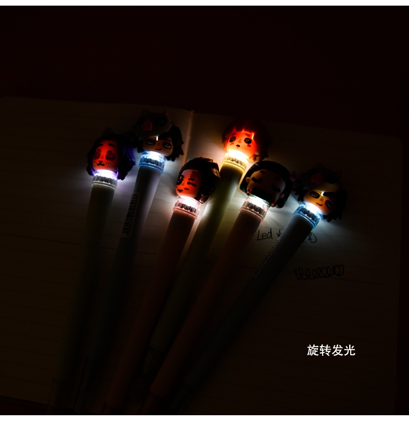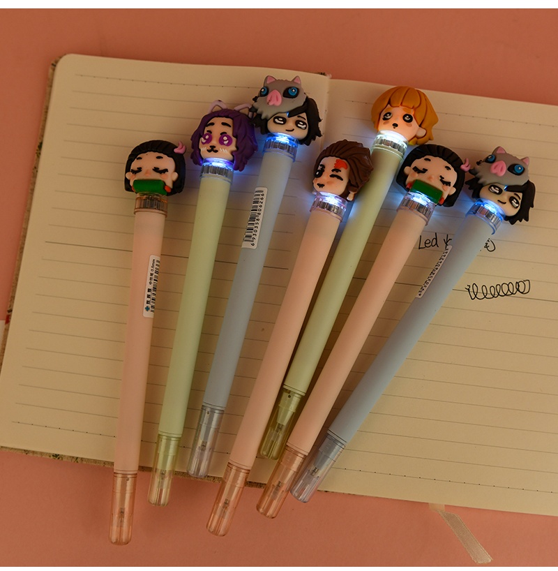 2020卡通动漫软胶LED灯鬼灭之刃中性笔黑色学生创意卡通签字笔