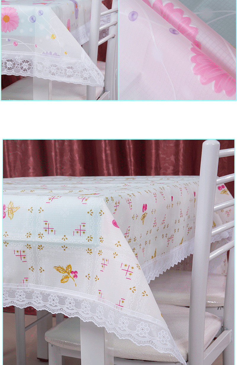 欧式田园PVC雷丝花边桌布防水免洗餐桌布台布防油桌垫