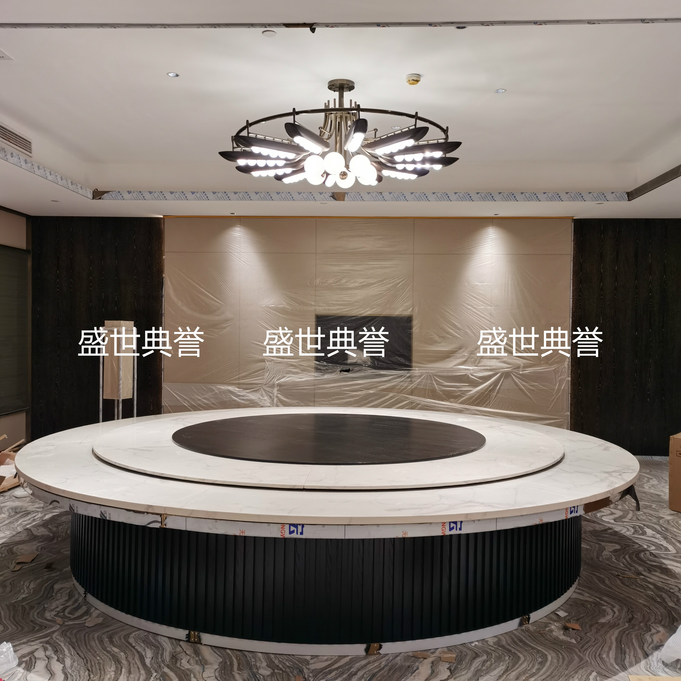 桂林国际酒店大理石电动餐桌餐厅实木大圆桌包厢20人电动转盘餐桌 English | 投诉