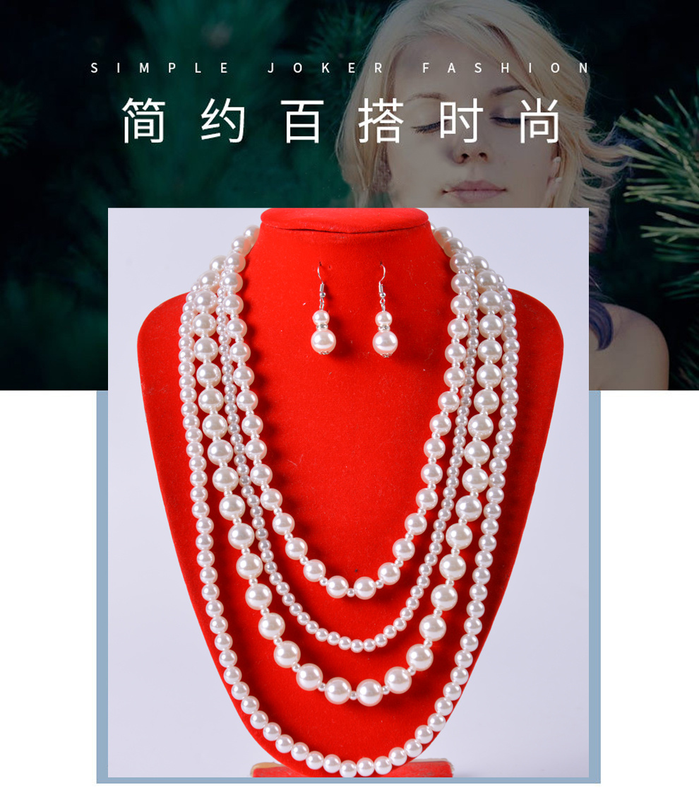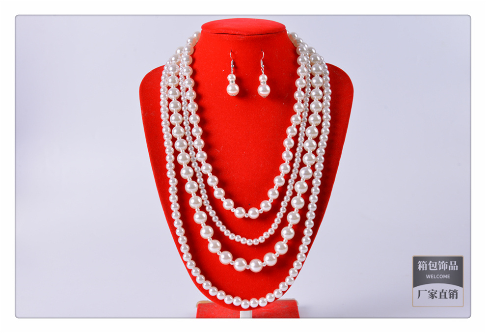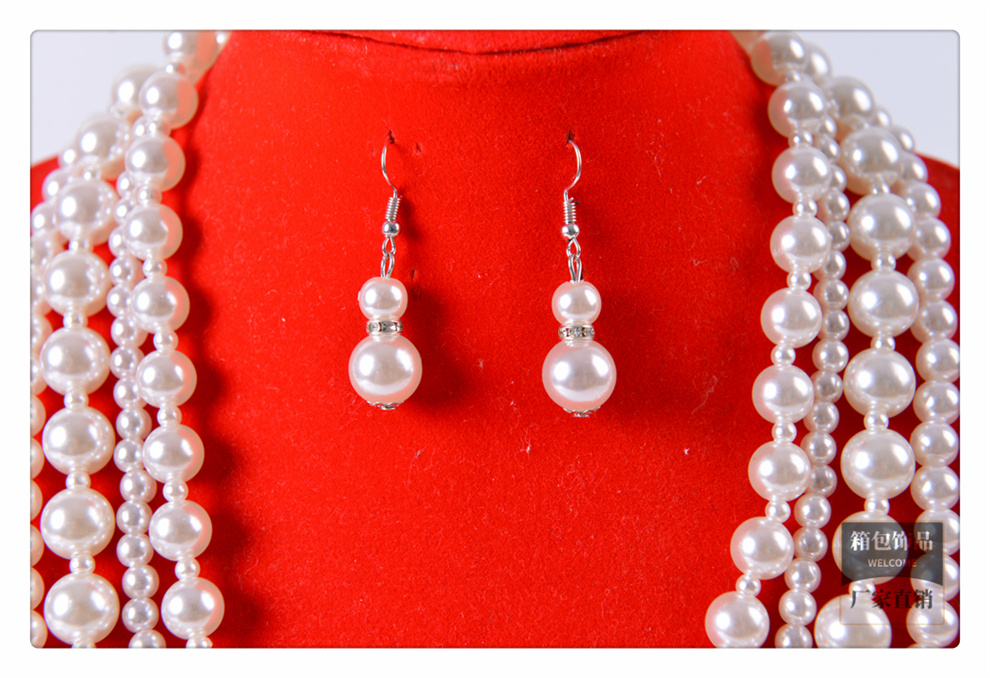 产品名称:时尚精美仿珍珠项链耳环套装 欧美气质多层珍珠项链耳环 首饰批发