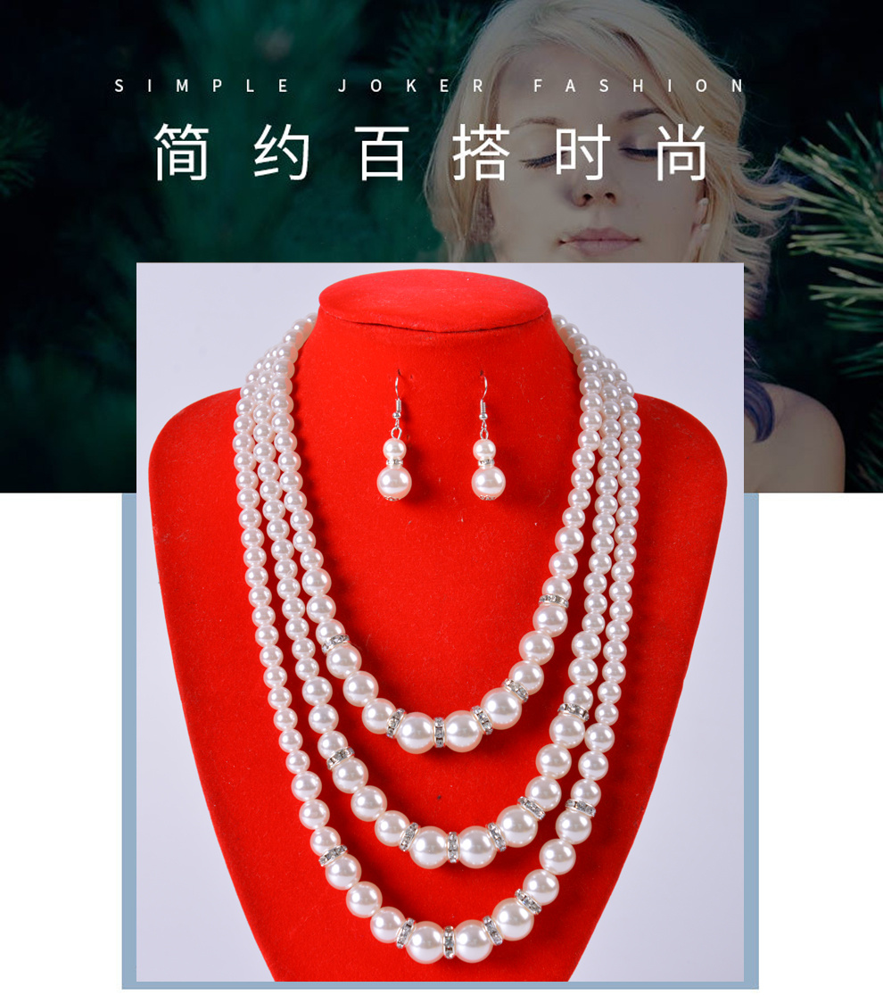 产品名称:轻奢典雅三层人造珍珠串珠链大小颗粒拼接项链葫芦形珍珠耳环套装