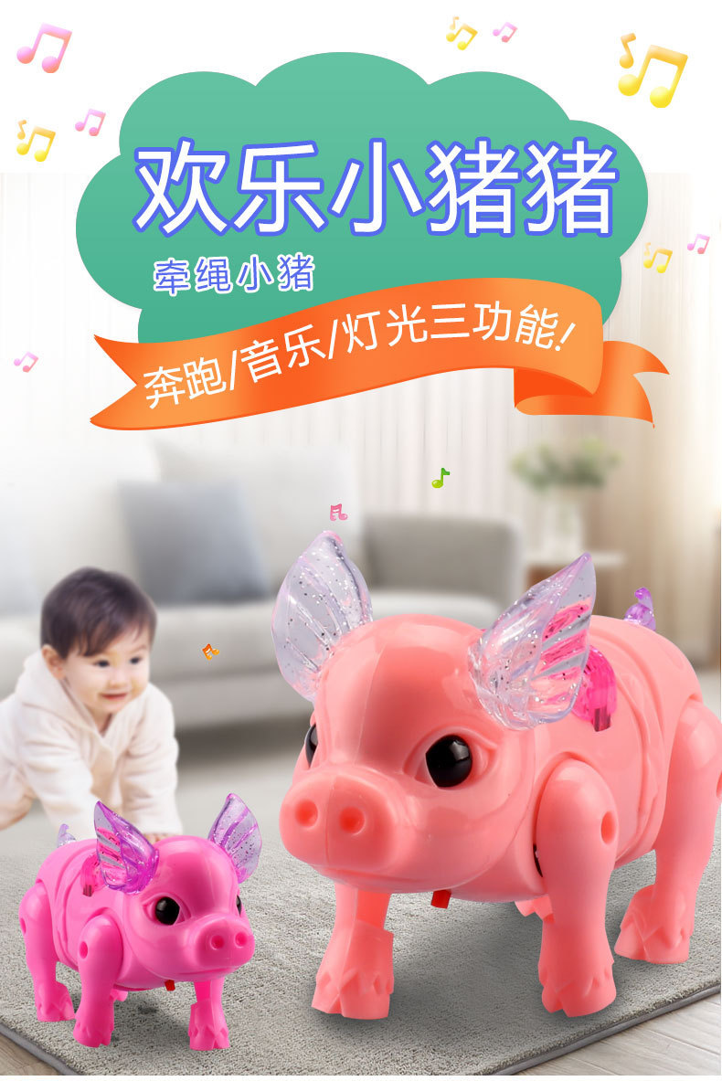 网红牵绳会跑的电动小猪发光音乐走路儿童宝宝玩具男女孩小孩抖音