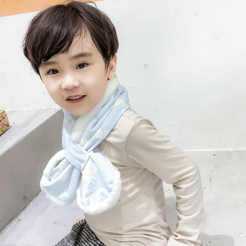 韩国东大门秋冬儿童加绒加厚保暖交叉卡通围巾围脖爆 English | 投诉