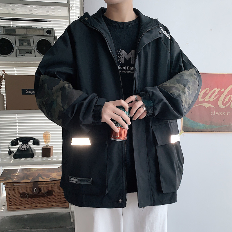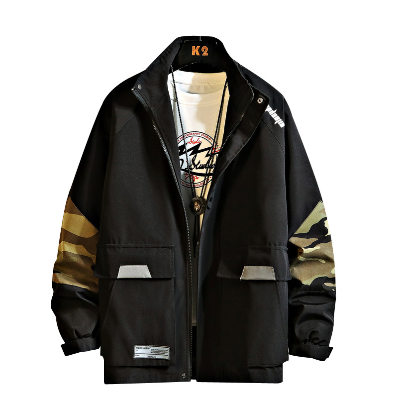 春季机能风日系迷彩拼接工装夹克男大码青少年bf潮牌休闲外套 English | 投诉