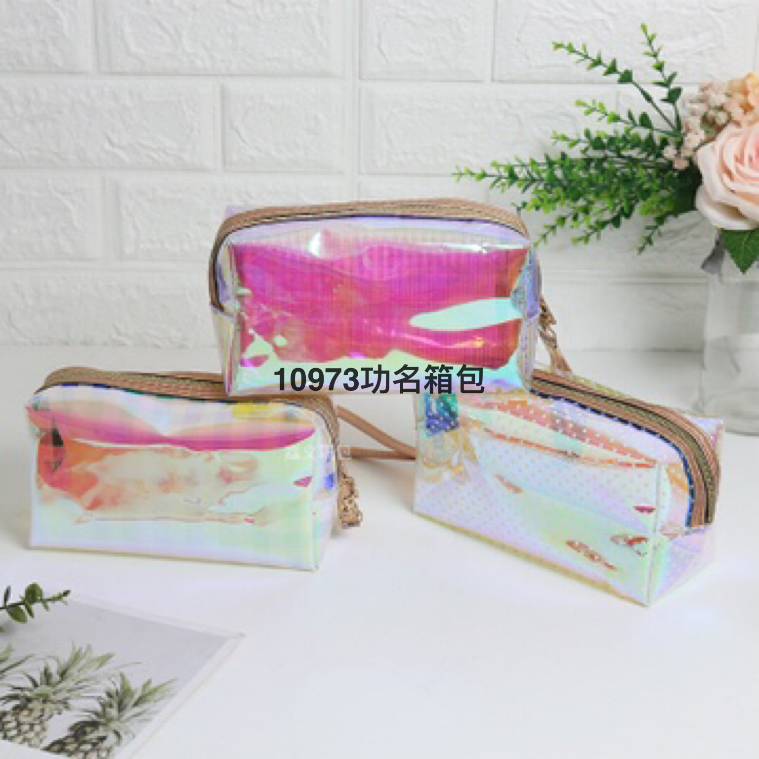 跨境新款TPU幻彩少女透明手提包便携旅行收纳包储物包化妆包女包