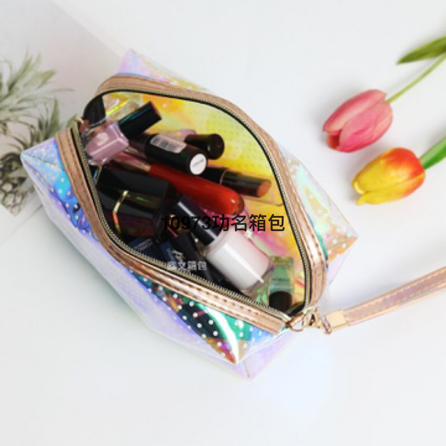 跨境新款TPU幻彩少女透明手提包便携旅行收纳包储物包化妆包女包 English | 投诉