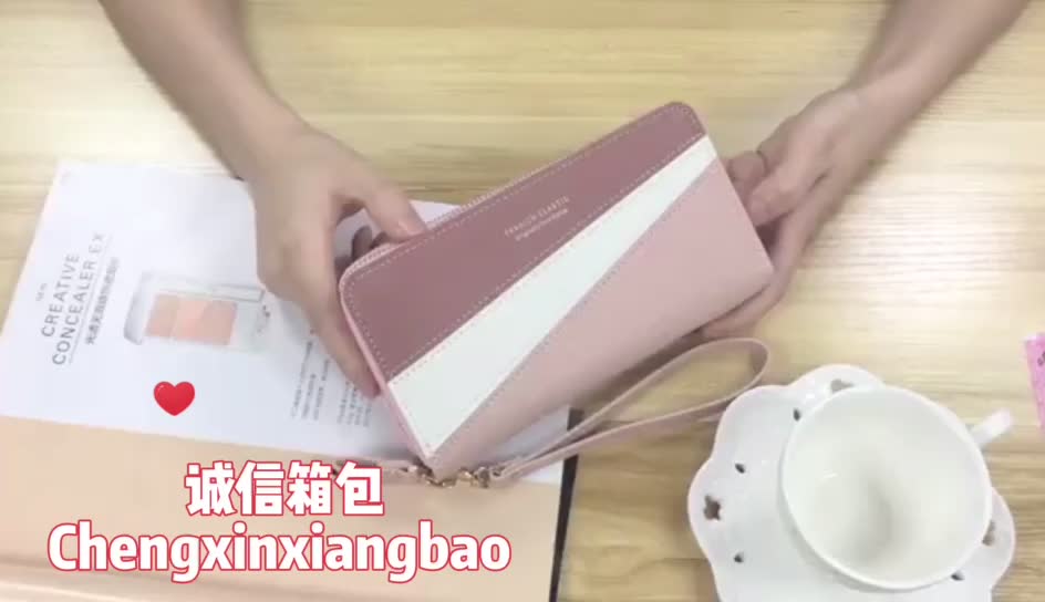 钱包钱包女双拉链钱包手拿包外贸定制拼接撞色PU双层钱夹手机包 English | 投诉