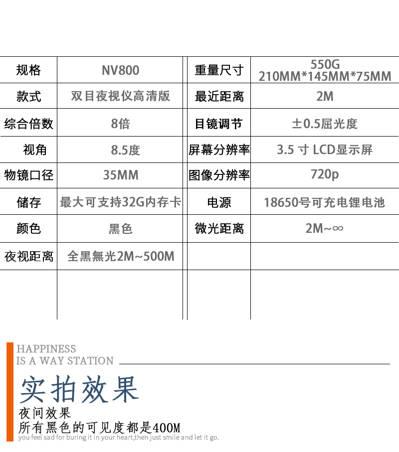 T-EAGLE突鹰NV800Pro黑色双筒手持数码红外夜视仪全黑昼夜两用 投诉