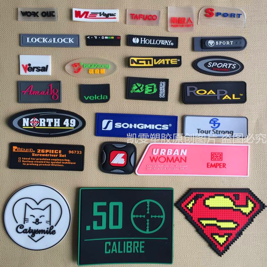 凯雯专业PVC软胶实力生产厂家, 承接各类PVC产品订单, 服装服饰箱包软胶辅料常用系列 ,PVC皮标 , PVC软胶拉牌, PVC耳机孔。