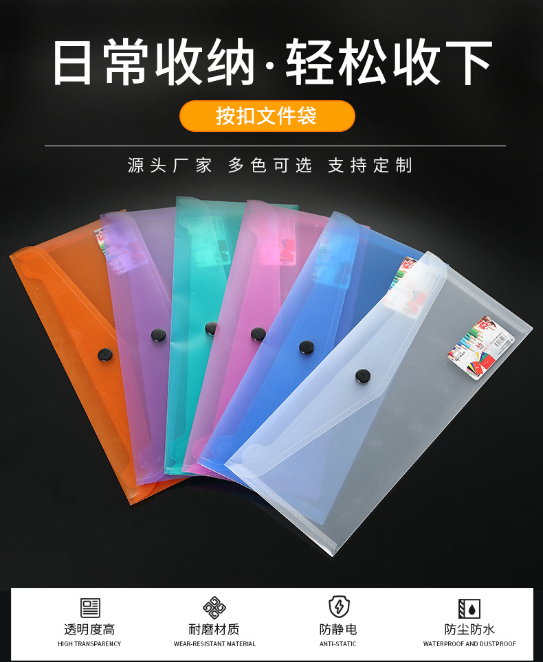 彩色办公用品磨砂透明塑料广告档案资料袋 pp按扣文件袋厂家直销