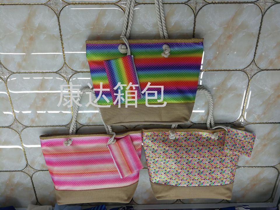 • 本店主营沙滩包,休闲包,购物包,单肩包,自产自销,款式新颖多样,诚信经营,质量有保证,欢迎来样定做,来电洽谈!